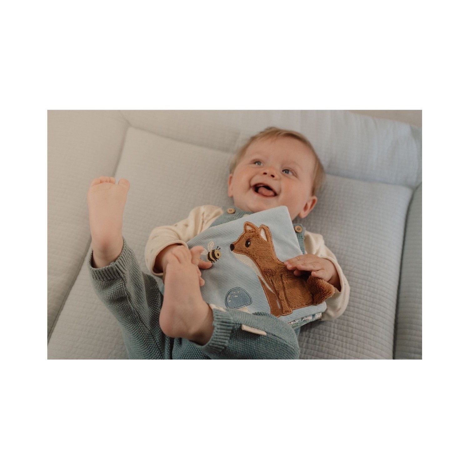 Nunca te aburrirás con este libro de actividades táctiles sobre Forest Friends. El simpático zorro te invita a observar más de cerca el bosque encantado. Hay muchos materiales y actividades diferentes para explorar, como un espejo, un sonajero y juguetes crujientes. El suave librito también tiene diferentes etiquetas para tocar. No solo estimulará los sentidos, sino que también ayudará a desarrollar la coordinación mano-ojo.