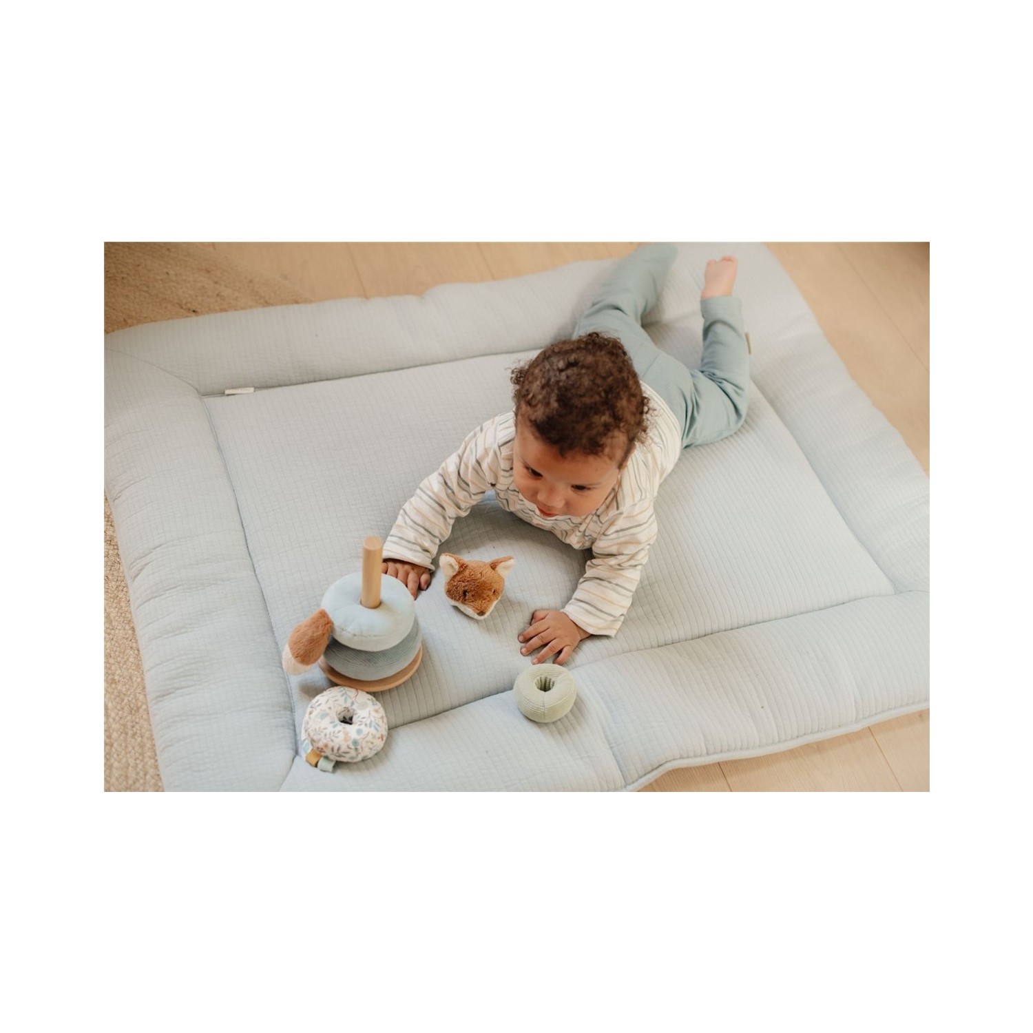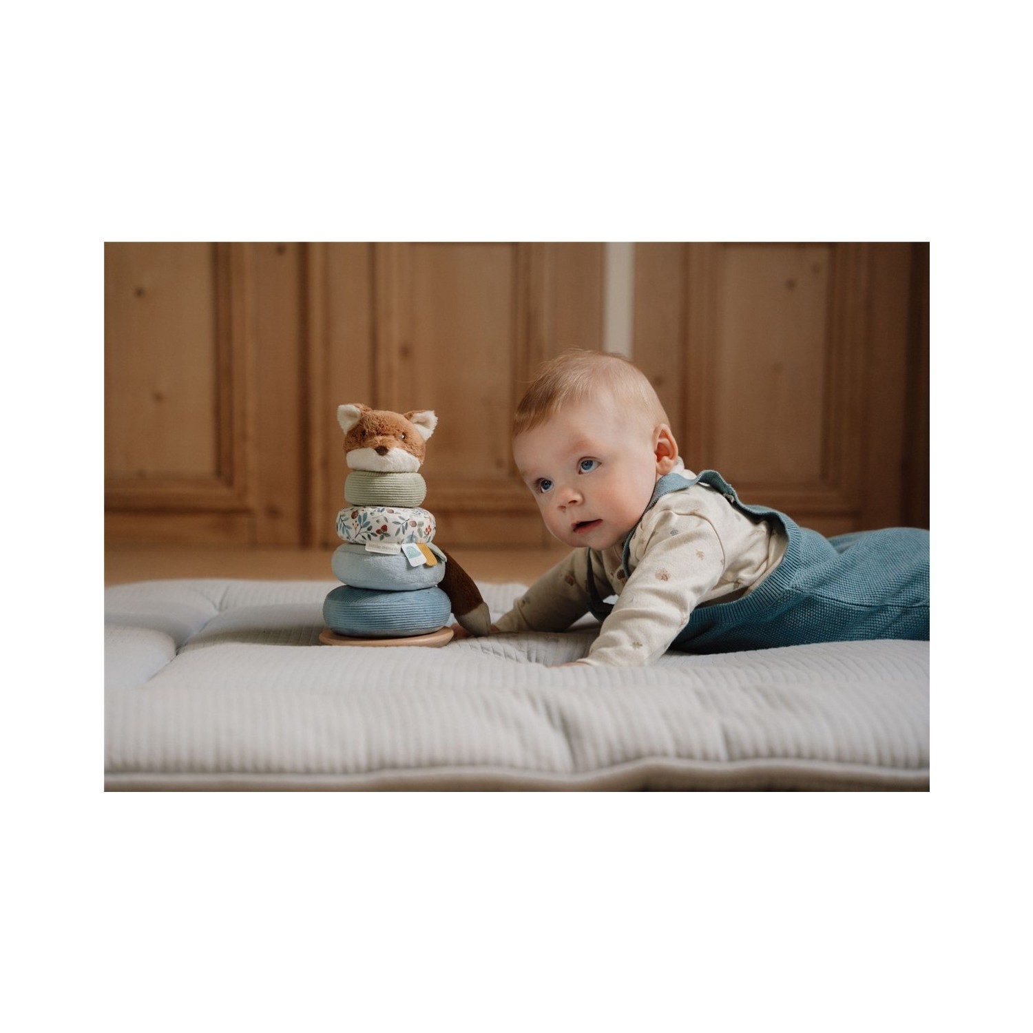 ¡Apila los anillos en la base mecedora y deja que el zorro baile y gire! Es todo un desafío apilar los anillos sobre una base de madera que se balancea hacia adelante y hacia atrás. Sin embargo, el adorable zorro te anima a persistir y lo celebrará con un pequeño baile una vez que la pirámide esté completa. Cada encantador anillo presenta un diseño único inspirado en la colección Forest Friends. Este apilador de anillos oscilantes está diseñado para mejorar la coordinación ojo-mano .