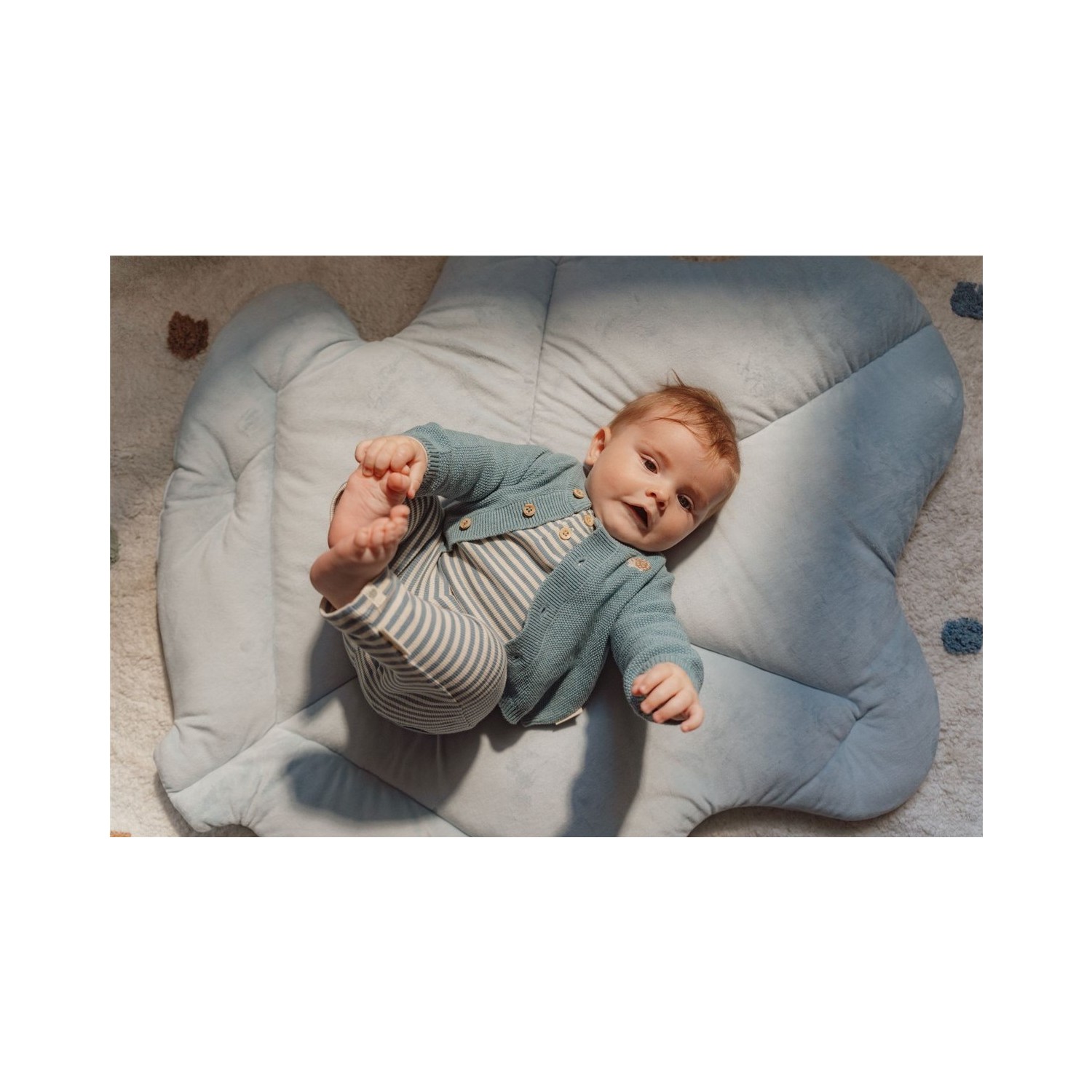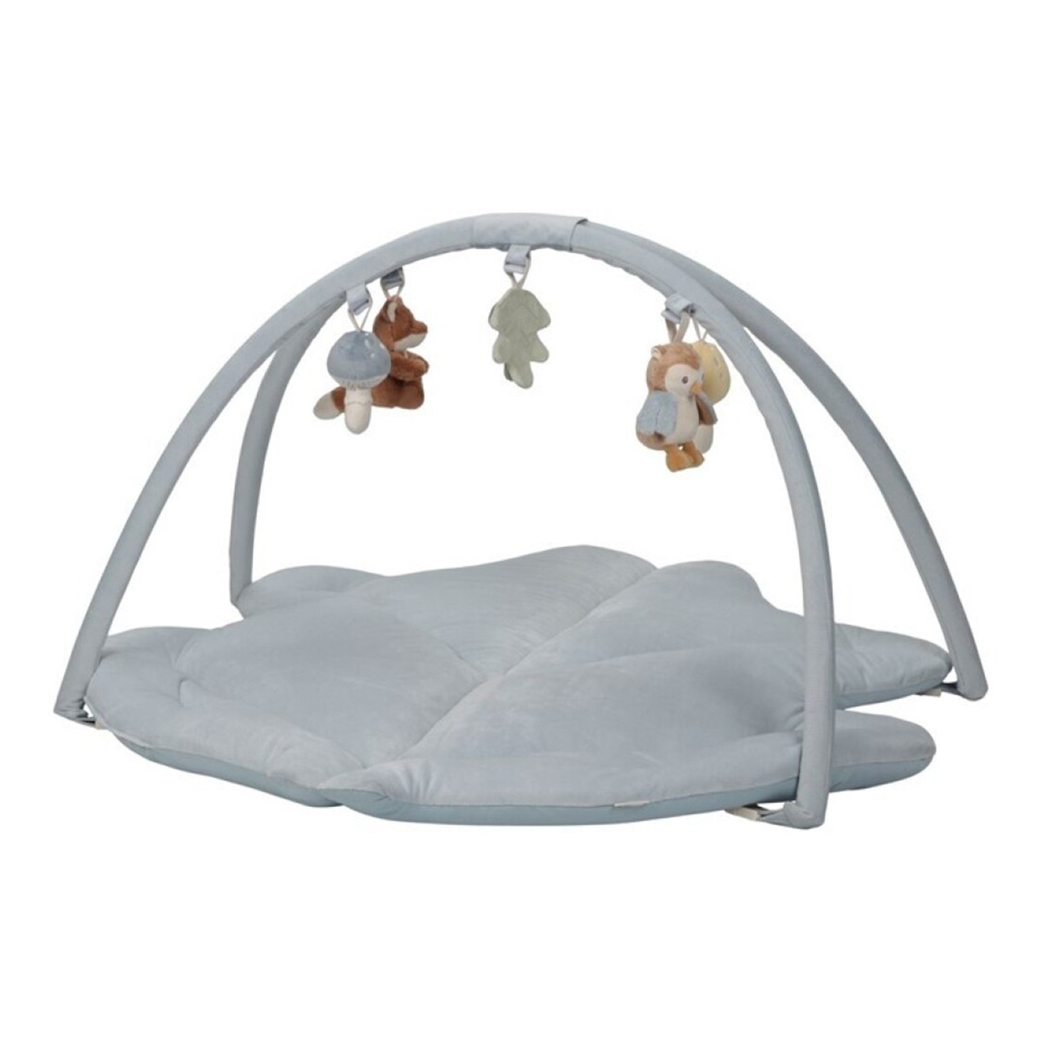 ¡Hay tanto para ver, tocar y oír! Cada día es una aventura con esta alfombra de juego con forma de hoja. Presentada en un suave tono azul, tiene dos arcos de pana con cinco peluches colgantes diferentes de la colección Forest Friends. El pequeño zorro, el búho sabio, el hongo amarillo y azul y la hoja ayudarán a desarrollar las habilidades sensoriales y la coordinación mano-ojo.
