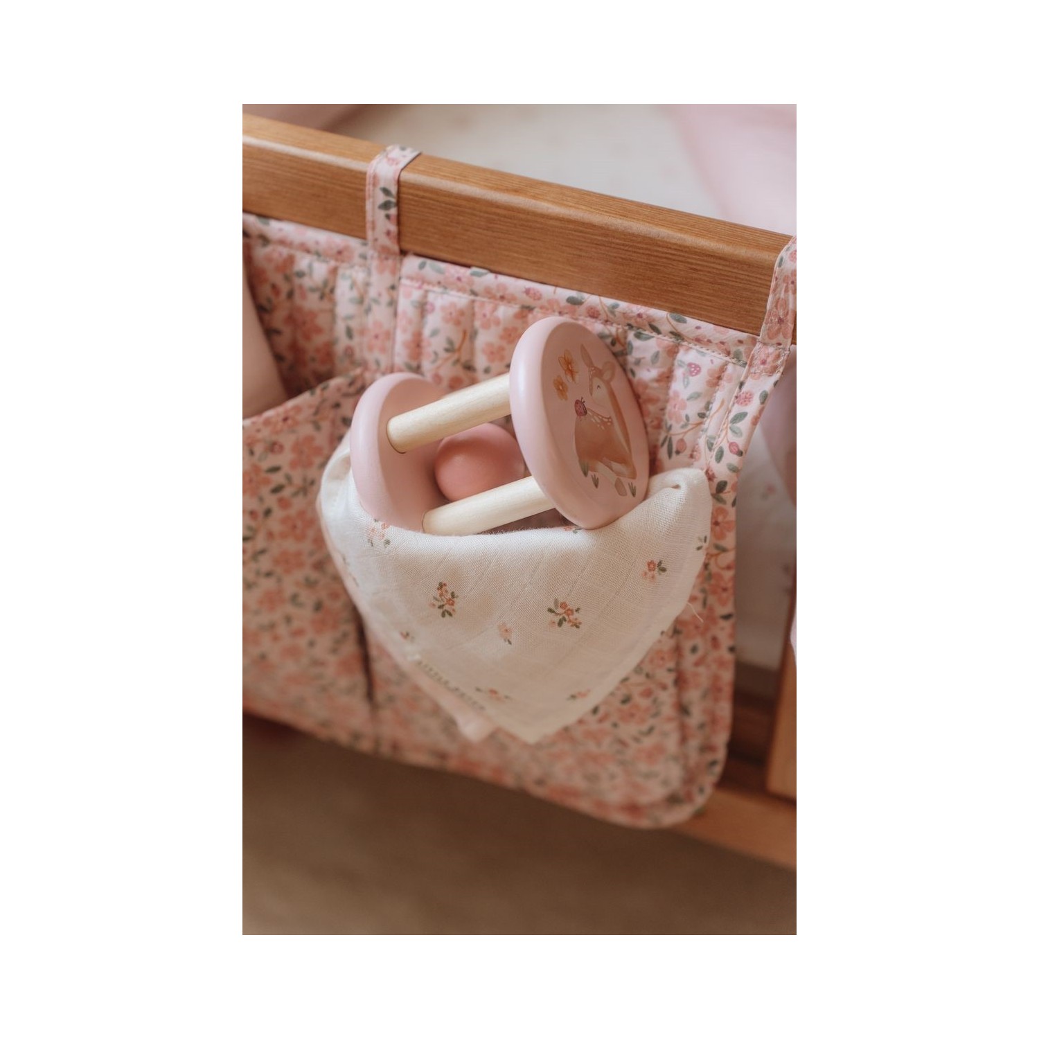 ¡Sonríe, rueda y agítalo con alegría! Este adorable sonajero de madera rueda y rueda, haciendo un sonido de traqueteo a medida que avanza. Sus encantadores lados rosados ??muestran una encantadora ilustración de la colección Fairy Garden, que presenta un dulce ciervo acompañado de una mariquita amigable en un exuberante entorno de jardín. Diseñado para promover la coordinación mano-ojo, este sonajero tiene el tamaño perfecto para que las pequeñas manos lo agarren y exploren.