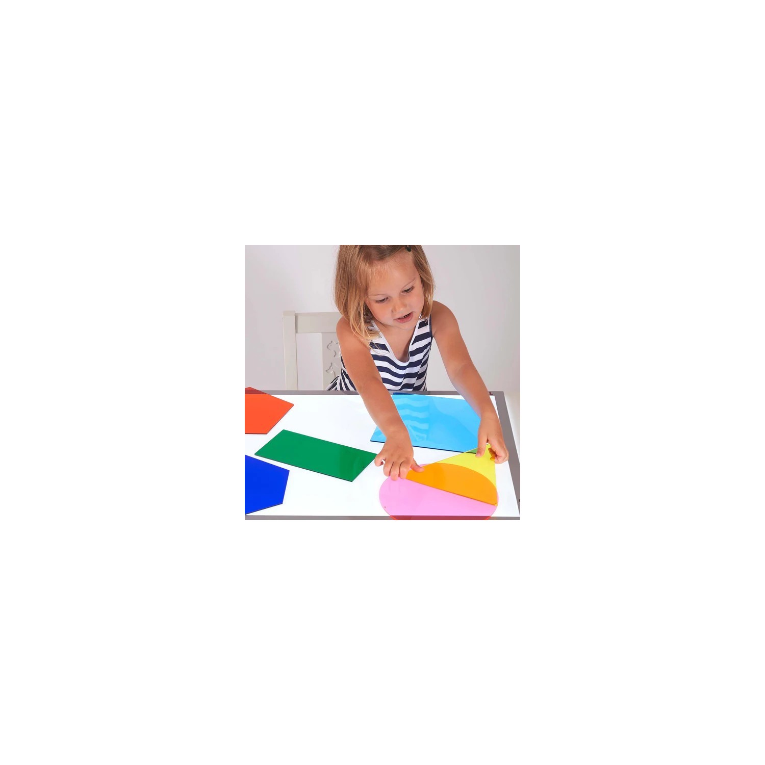 Las formas mezcladoras de colores tickit ® Jumbo son un accesorio ideal para usar con nuestros paneles de luz. Seis formas gigantes (cuadrado, rectángulo, círculo, triángulo, pentágono y hexágono) en acrílico de diferentes colores (rosa, azul, amarillo, verde, morado y naranja).