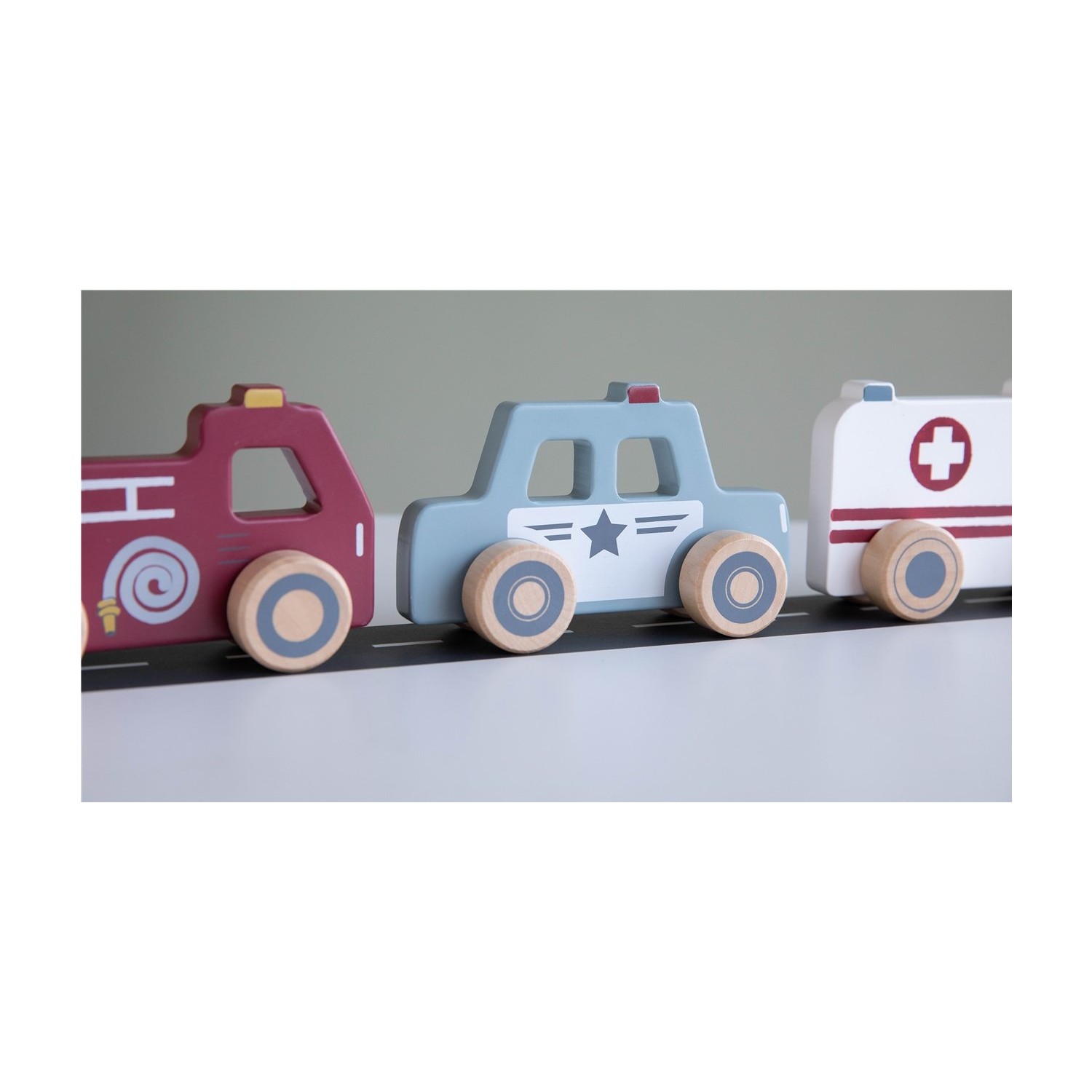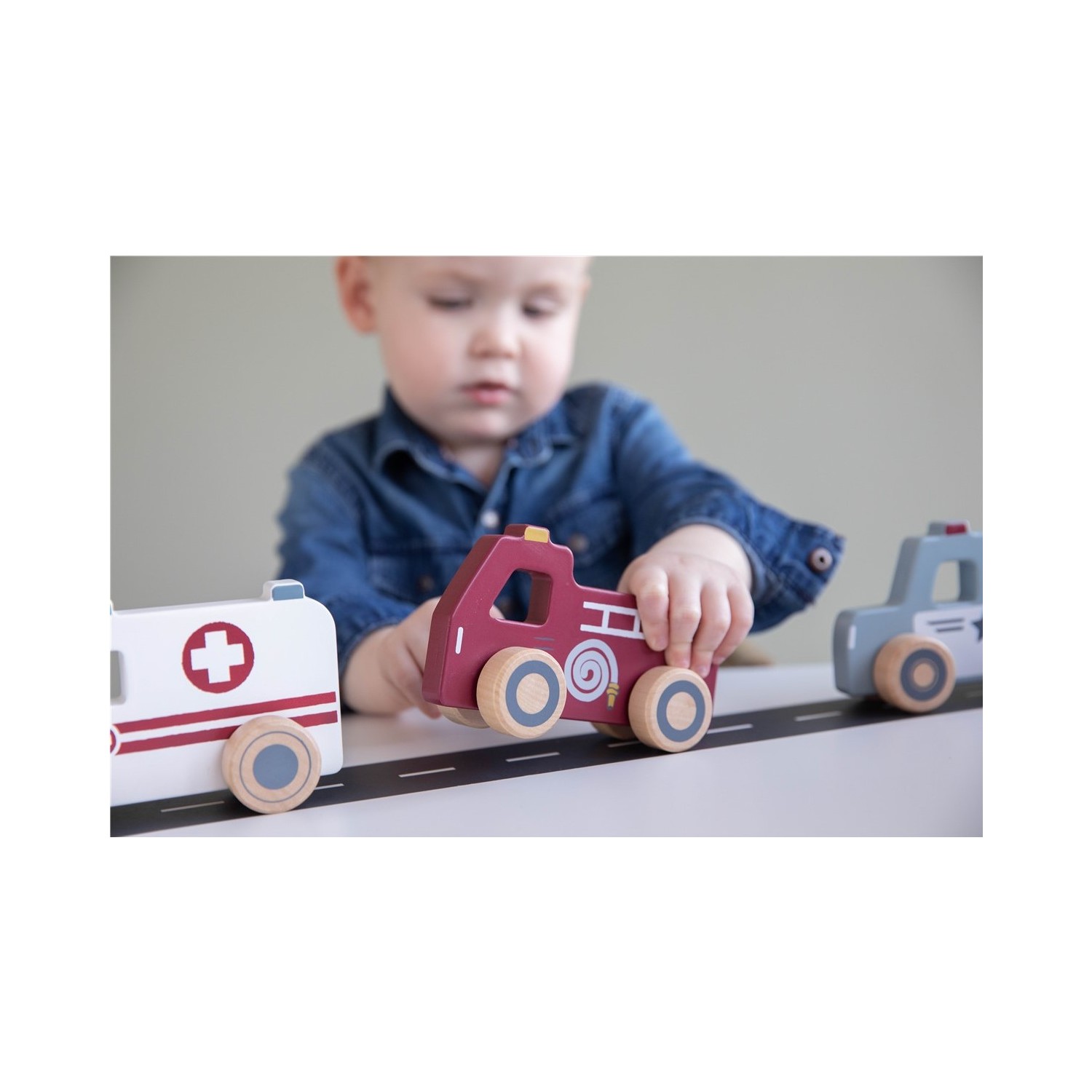 ¿Alguien necesita ayuda? ¡Los servicios de emergencia de Little Dutch están en camino! Con estos vehículos especiales, los niños aprenden a trabajar juntos y a ofrecer ayuda a otros a través del juego de roles. El conjunto consta de una ambulancia, un coche de policía y un camión de bomberos de resistente madera.