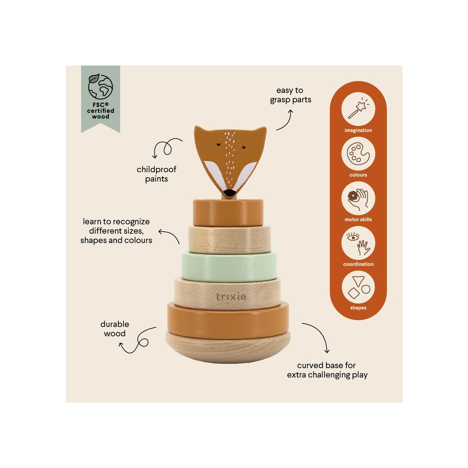 ¡Con su hermoso equilibrio entre madera y color, este clásico en la gama de juguetes de madera es absolutamente imprescindible! La base de madera tiene bordes redondiados y una parte inferior en forma serperteante, lo que hace el juego más seguro y desafiante. Aumentará la coordinación ojo-mano y estimulará las habilidades motoras finas, mientras aprenden a reconocer diferentes tamaños, formas y colores.Todos los elementos están hechos de madera 100% certificada FSC®. Todas las pinturas utilizadas son a base de agua, seguras para los niños y no tóxicas. Disponible en muchos animales diferentes.