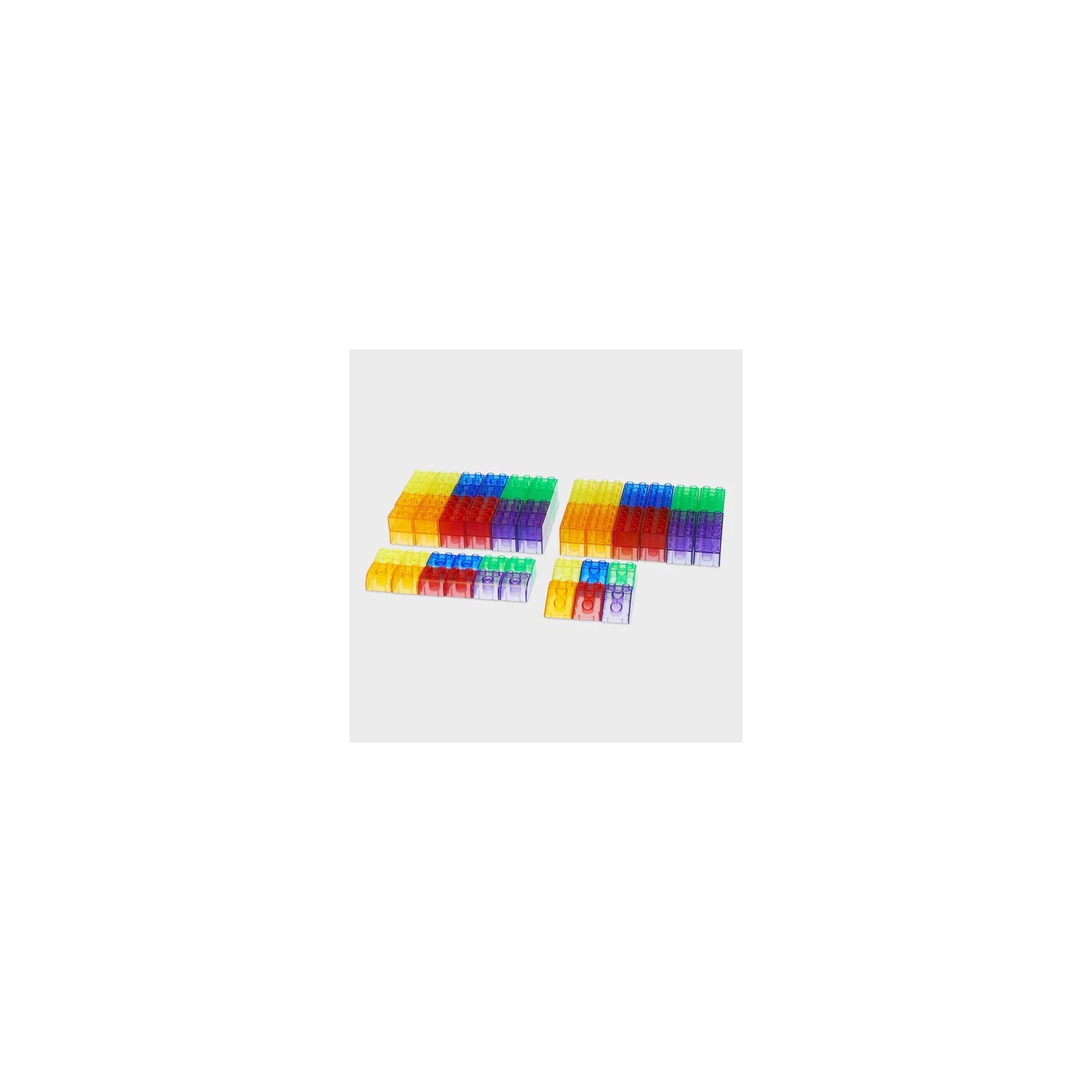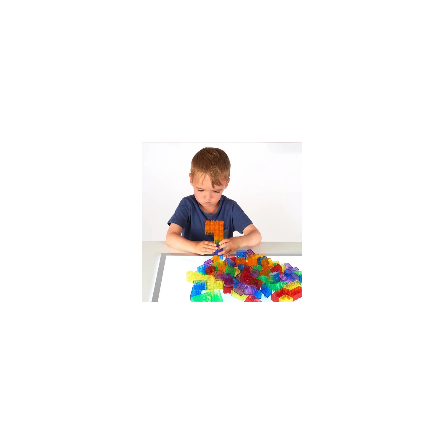 Translucent Module Blocks es un conjunto de bloques de construcción acrílicos de colores en cuatro formas diferentes, perfecto para usar en un panel de luz donde las torres y estructuras lucen aún más impresionantes con la luz brillando a través de los coloridos edificios. Ideal para desarrollar la motricidad fina a través de la construcción y fomentar el juego imaginativo.