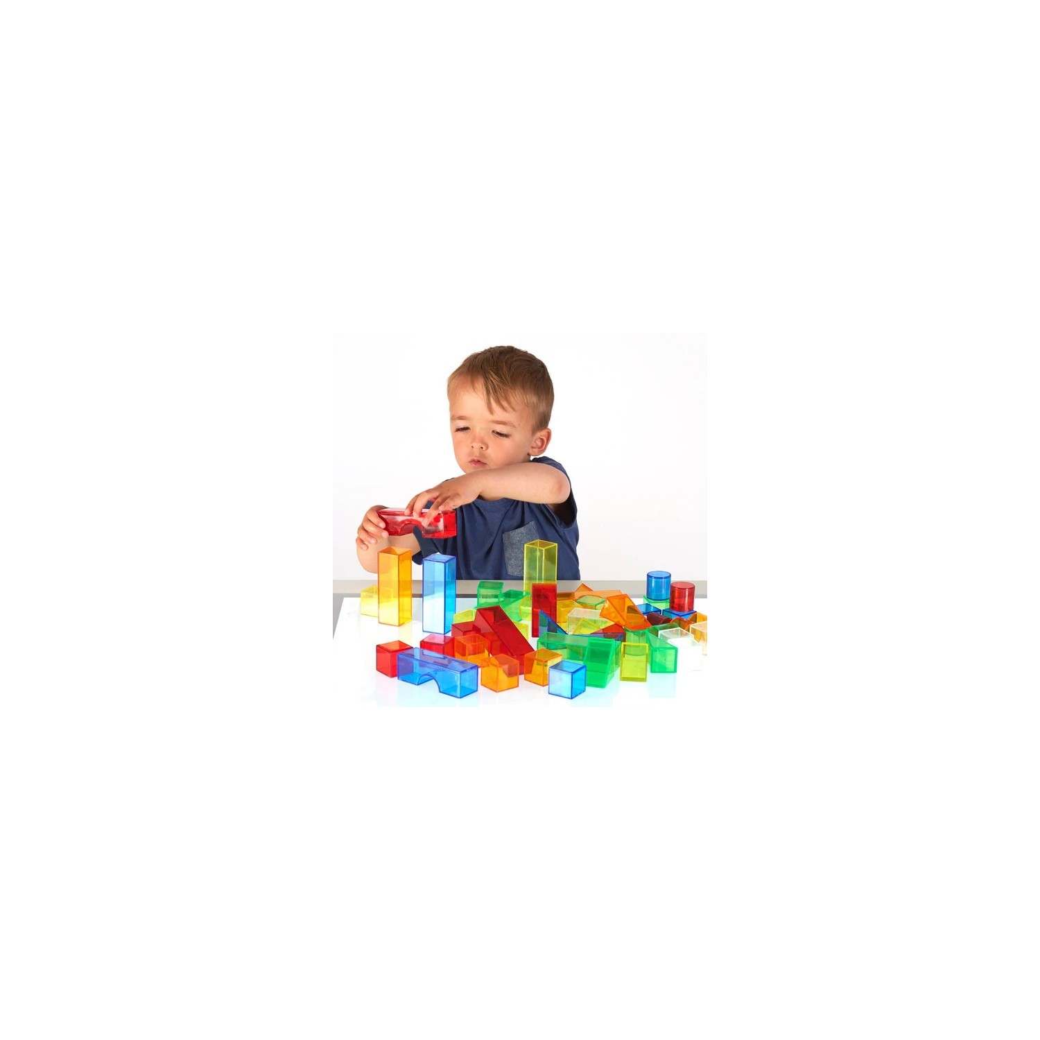 Translucent Color Blocks es un conjunto de bloques de construcción 3D acrílicos de colores en seis formas, perfectos para usar en un panel de luz donde las torres y estructuras lucen aún más impresionantes con la luz brillando a través de los coloridos edificios. Ideal para desarrollar la motricidad fina a través de la construcción y fomentar el juego imaginativo. Incluye pilares circulares y rectangulares, prismas triangulares, cubos y puentes.