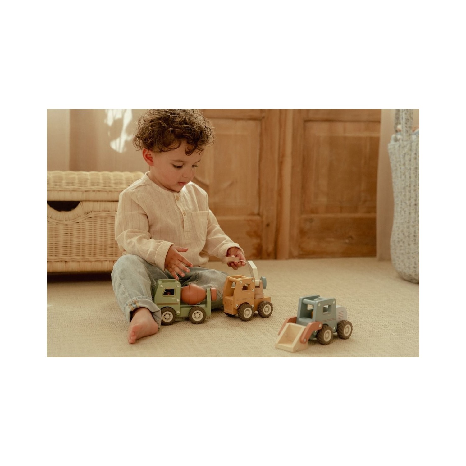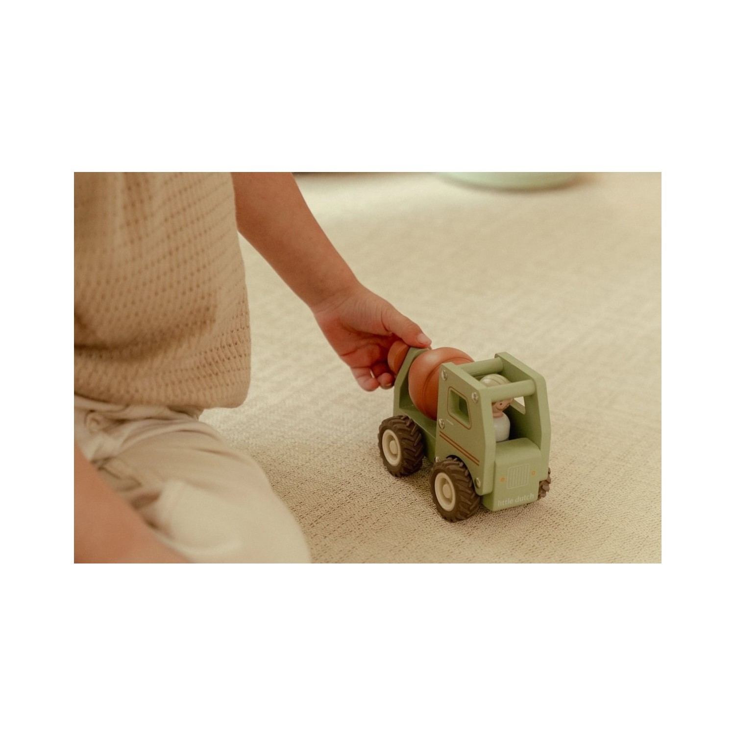 ¡Mezcla y construye! Este camión de cemento de madera gira su mezcladora mientras recorre la obra. La minihormigonera incluye un trabajador de construcción de madera y ruedas de goma para mayor comodidad al conducir. Conduce hasta la obra, vierte el hormigón y allana los caminos por completo. Combínalo con la excavadora y el camión dúmper de madera para una experiencia de construcción completa