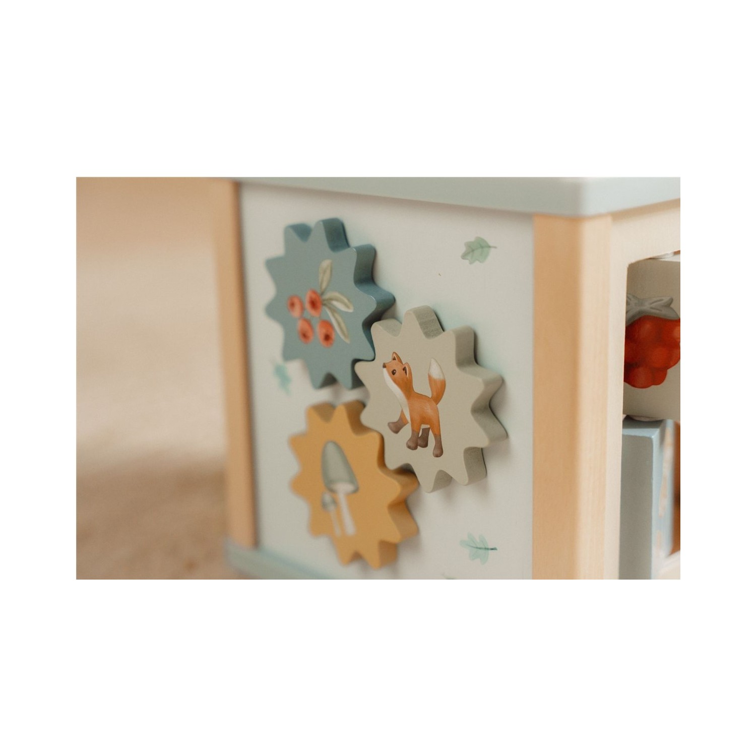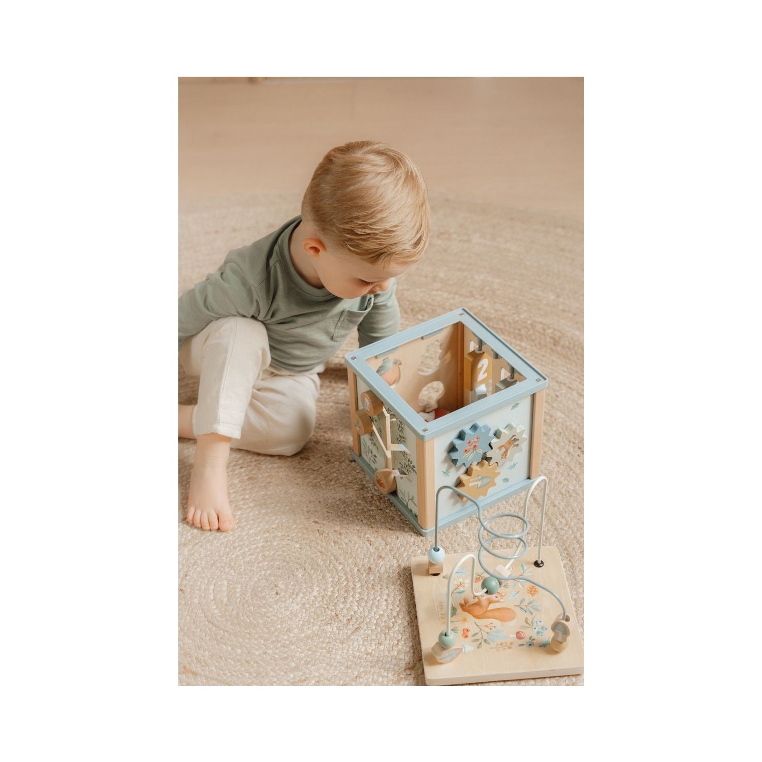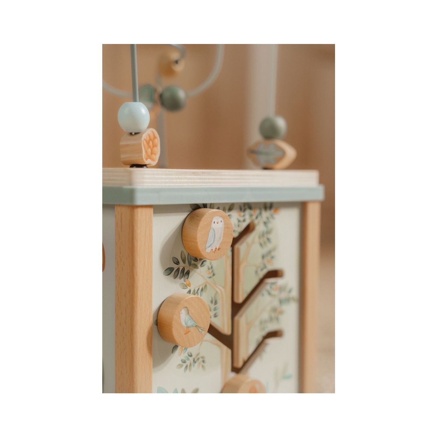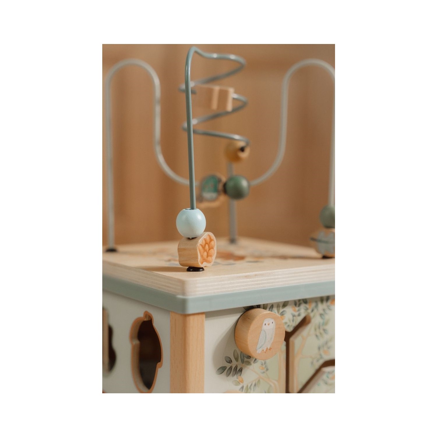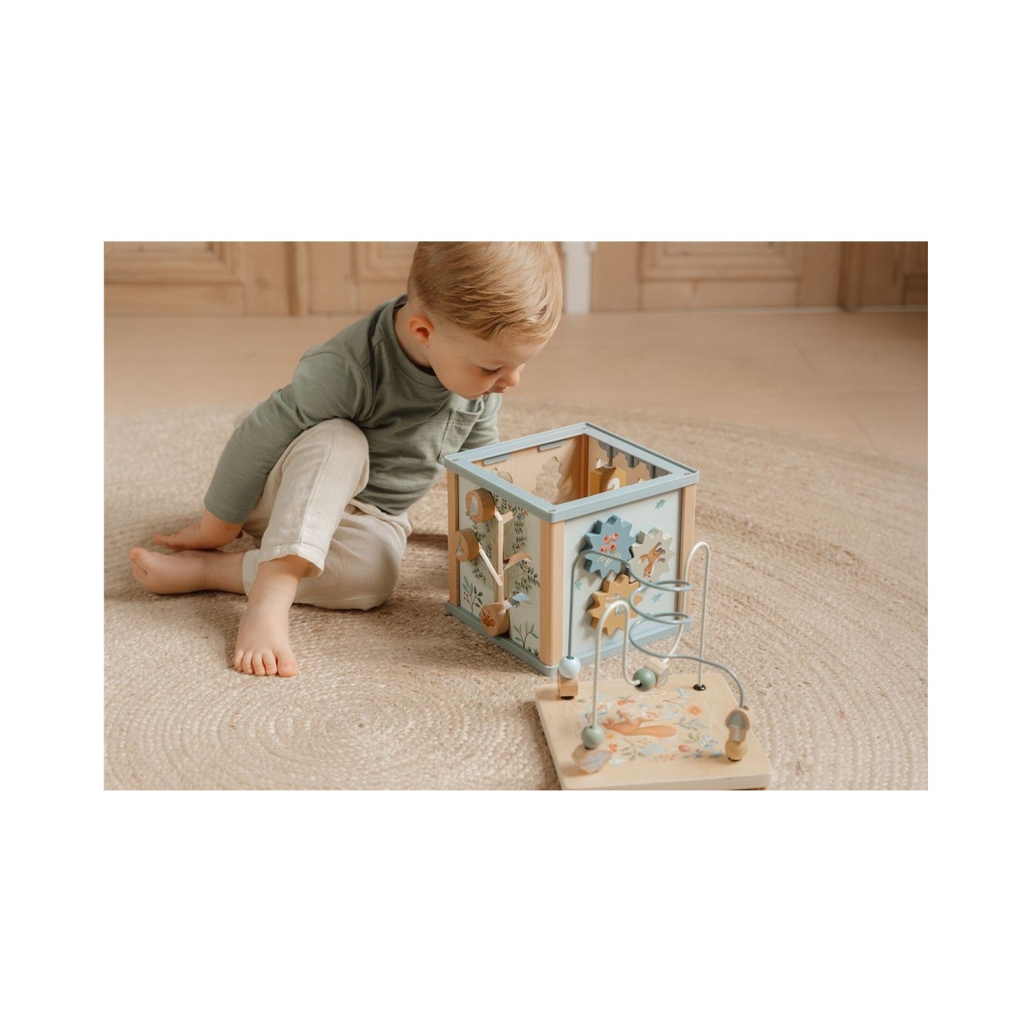 Embárcate en una aventura explorando cada lado de este entretenido cubo de actividades. Cada lado presenta encantadores elementos de Forest Friends y presenta una divertida actividad educativa, que incluye un clasificador de formas, engranajes giratorios, rompecabezas y un desafiante laberinto de cuentas en la parte superior. A través de cada interesante tarea, tu pequeño mejorará las habilidades motoras finas y se inspirará para dar rienda suelta a su creatividad.