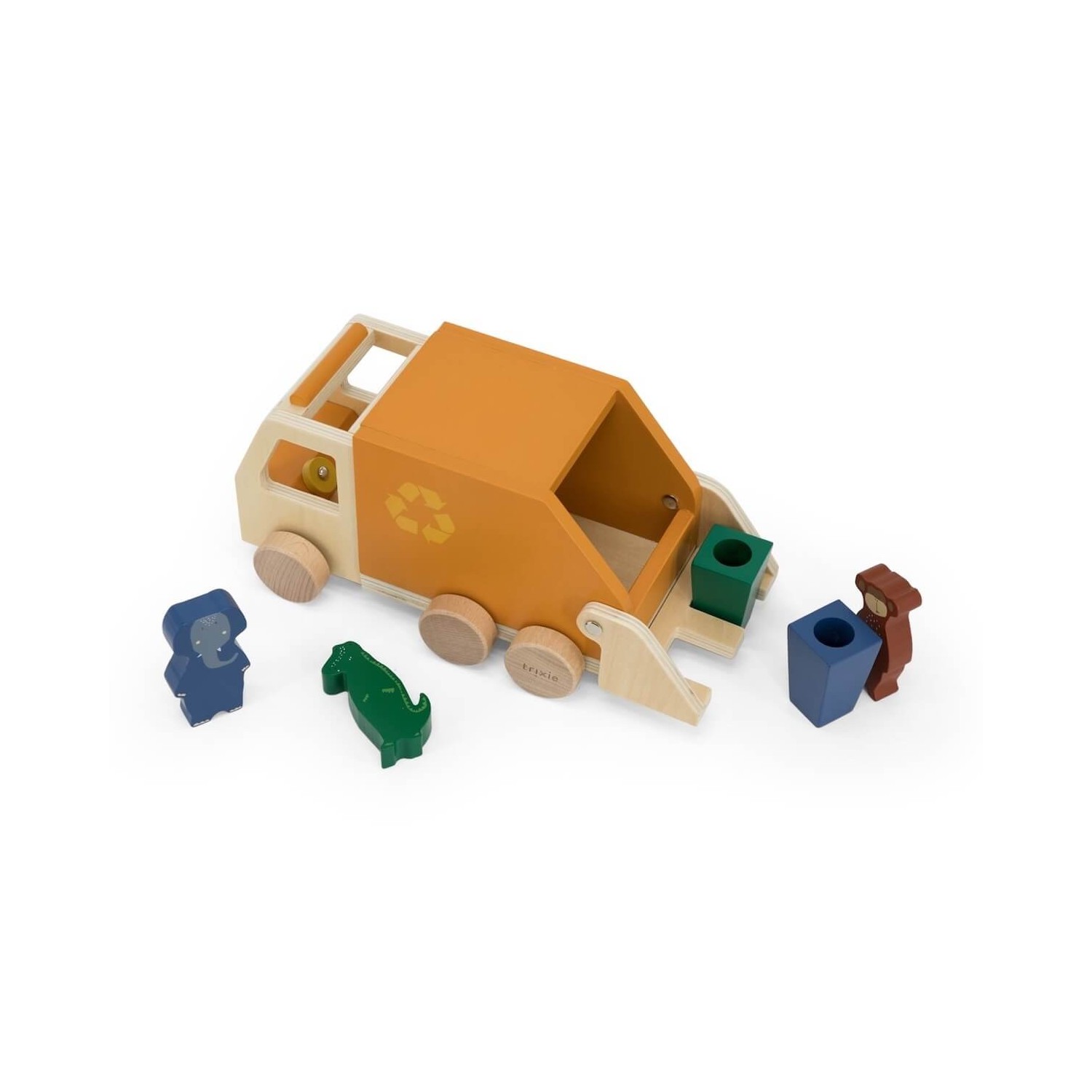 ¿Listo para reciclar y tirar la basura en el contenedor corrector? Nuestros amigos los animales de Trixie, te ayudarán a reciclar tanto como sea posible para un futuro más ecológico. El camión de la basura viene con 3 amigos animales y 2 contenedores para recoger y vaciar en la parte trasera, con trampilla móvil para poder vaciar los contenedores. ¡Una forma divertida para que tu peque aprenda todo sobre la importancia del reciclaje!