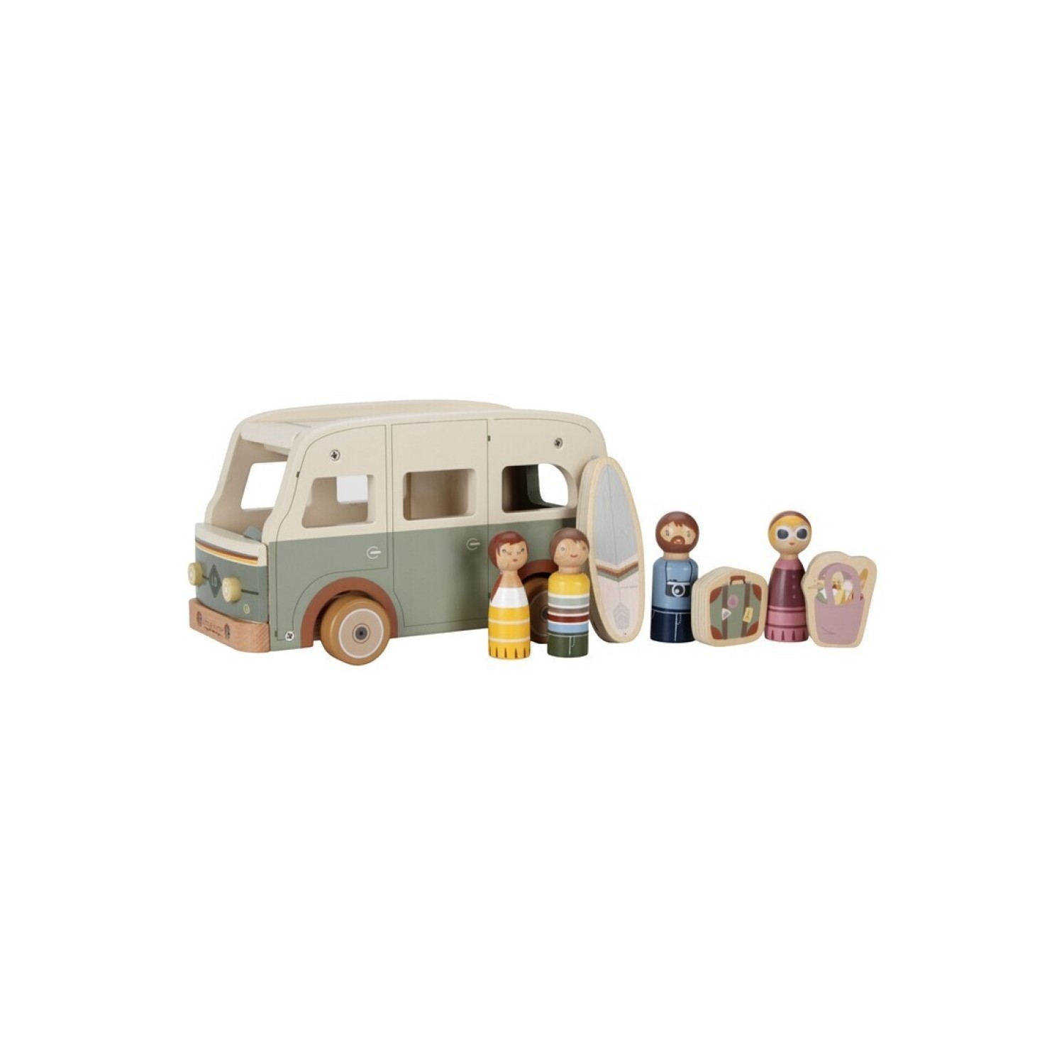 ¡Vamos a dar un paseo juntos! Levanta el techo de tu furgoneta retro y coloca los muñecos encajables en su interior. Furgoneta retro con accesorios como tabla de surf, maleta y bolsa de la compra en bonitos colores retro.