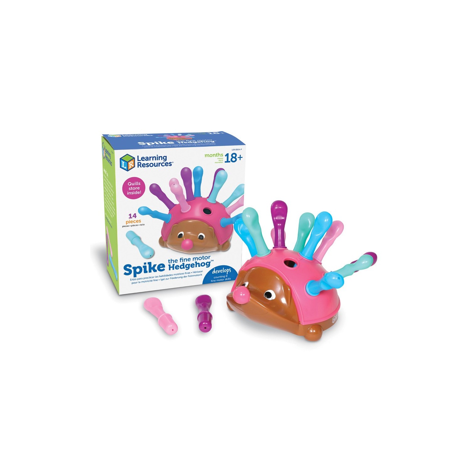 Juego para practicar habilidades motoras finas Spike the Fine Motor Hedgehog™ de Learning Resources. Verás cómo sus aptitudes tempranas de aprendizaje alcanzan su punto álgido practicando habilidades motoras finas con este erizo cuyos pinchos son clavijas. Los pequeños deberán encajar los 12 «pinchos» de colores en la espalda del erizo Spike y así reforzar sus habilidades para reconocer colores, contar y relacionar.