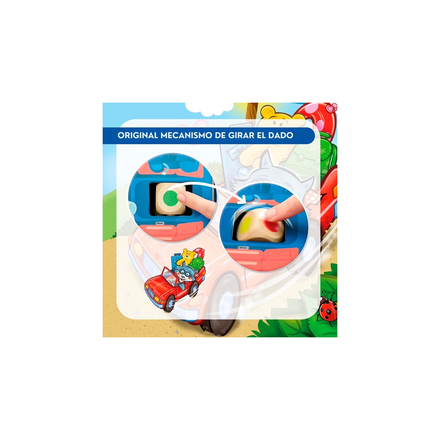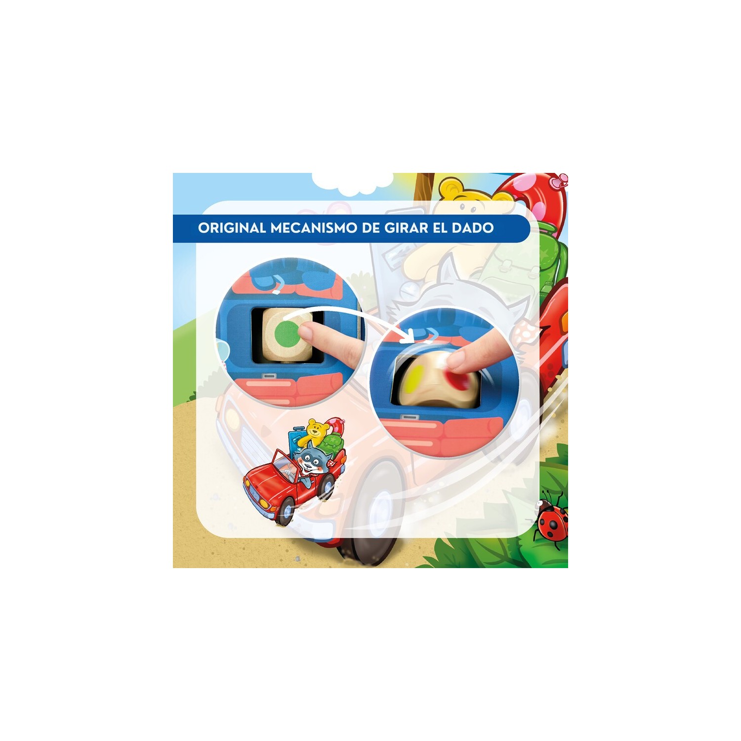 OTROS DETALLES: Sencillo y original mecanismo de dado. Reconocer y clasificar colores. El coche 3D anima al juego libre.