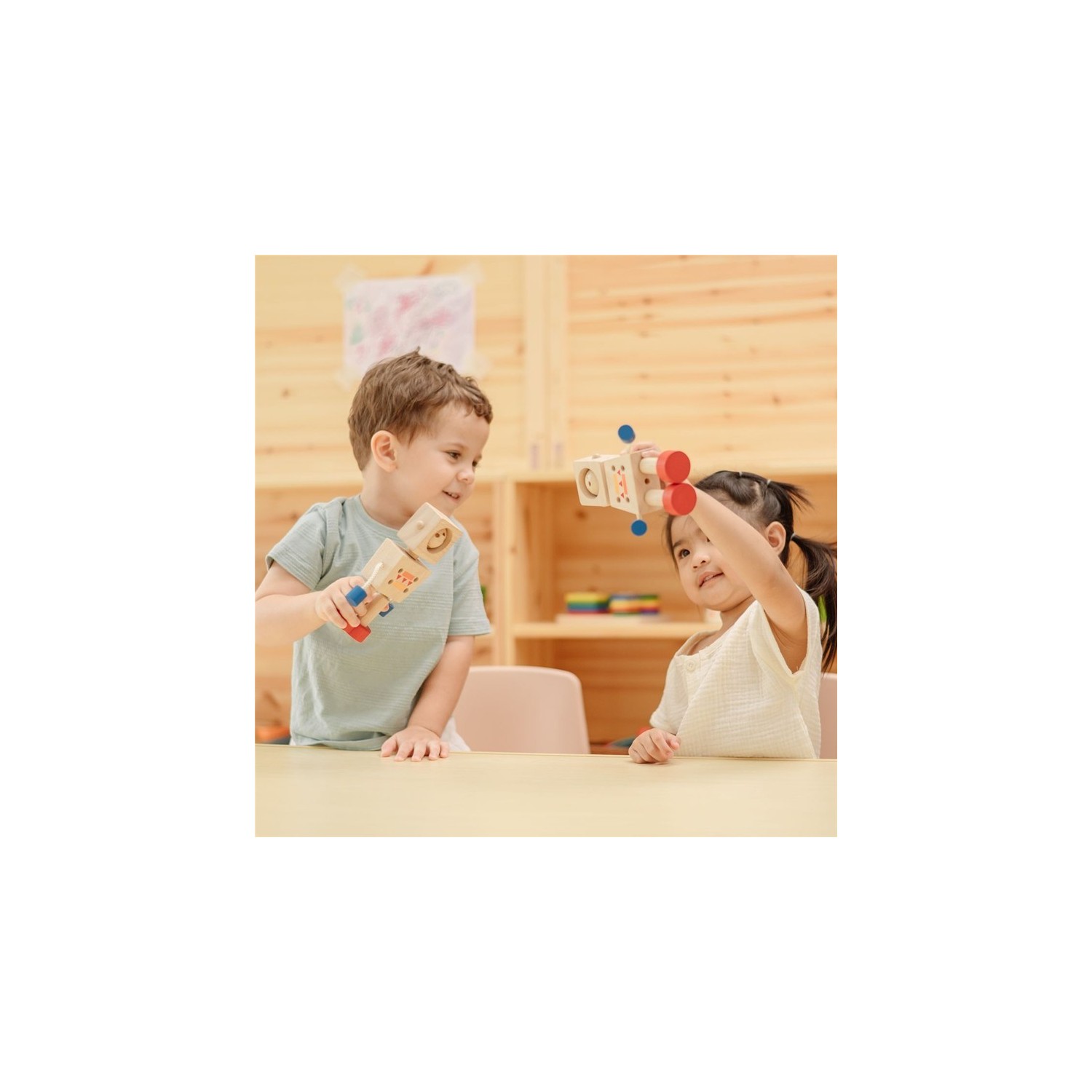 Este robot ayuda a los niños a comprender y expresar sus emociones de forma sana y lúdica. Su cara cuenta con un mecanismo giratorio que muestra diferentes emociones, lo que permite a los niños explorar una variedad de sentimientos. También se puede cambiar para representar diferentes géneros, fomentando la inclusión y la autoexpresión. Este juguete interactivo potencia la inteligencia emocional, las habilidades sociales y el desarrollo cognitivo mediante un juego divertido y práctico.