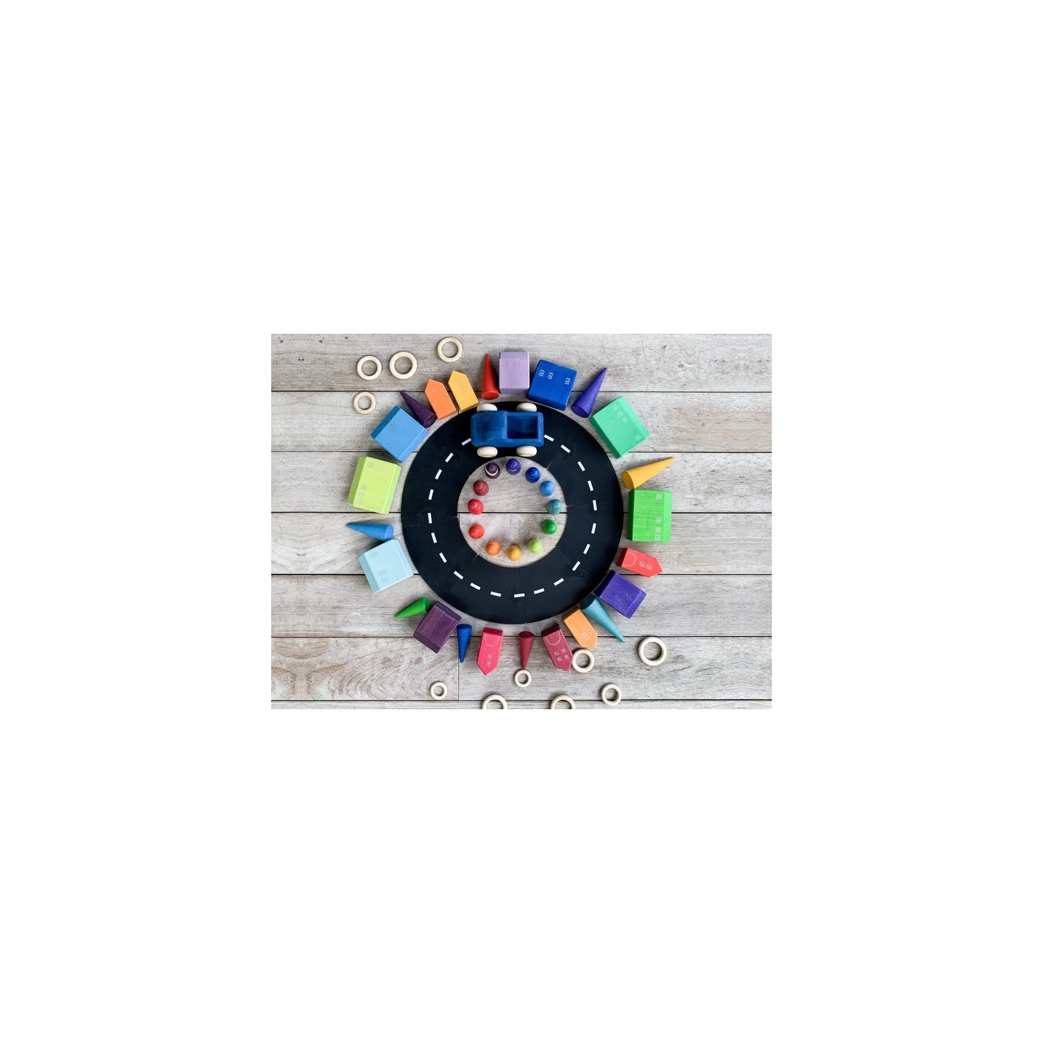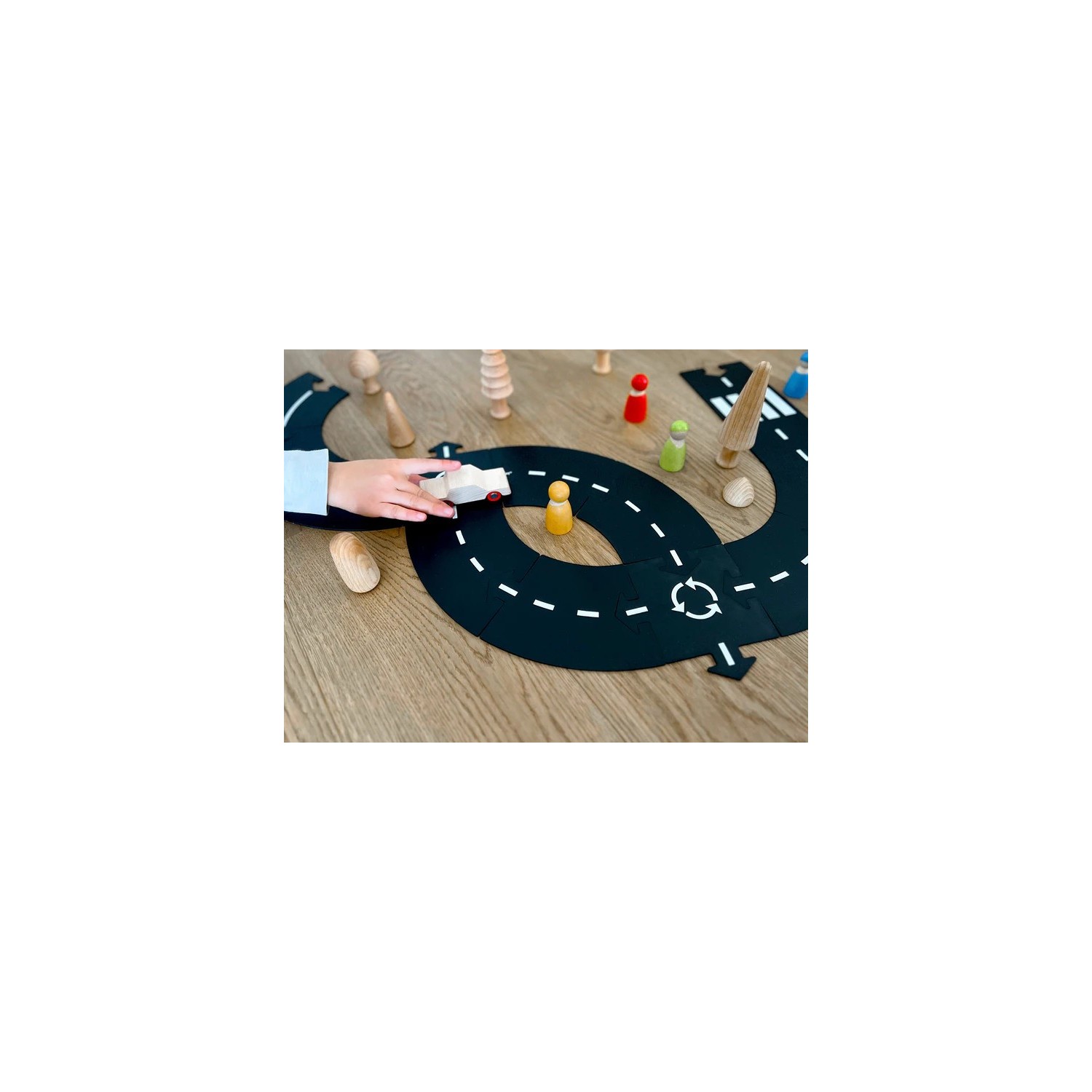 Este conjunto presenta 11 tramos de carreteras, cada una diseñada para flexionarse, curvarse y girar y combinar en infinitas configuraciones, lo que permite a los más jóvenes crear sus propias carreteras y desvíos. ¡Pero eso no es todo! También incluye un coche de madera listo para salir a la carretera!