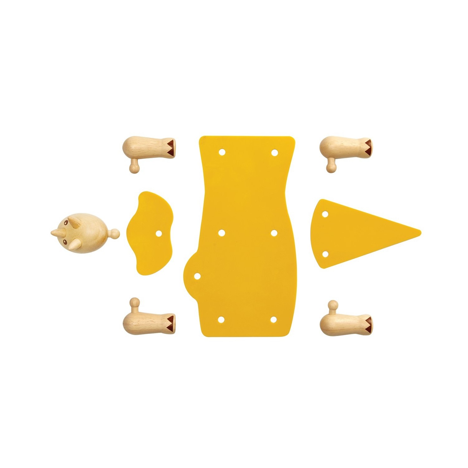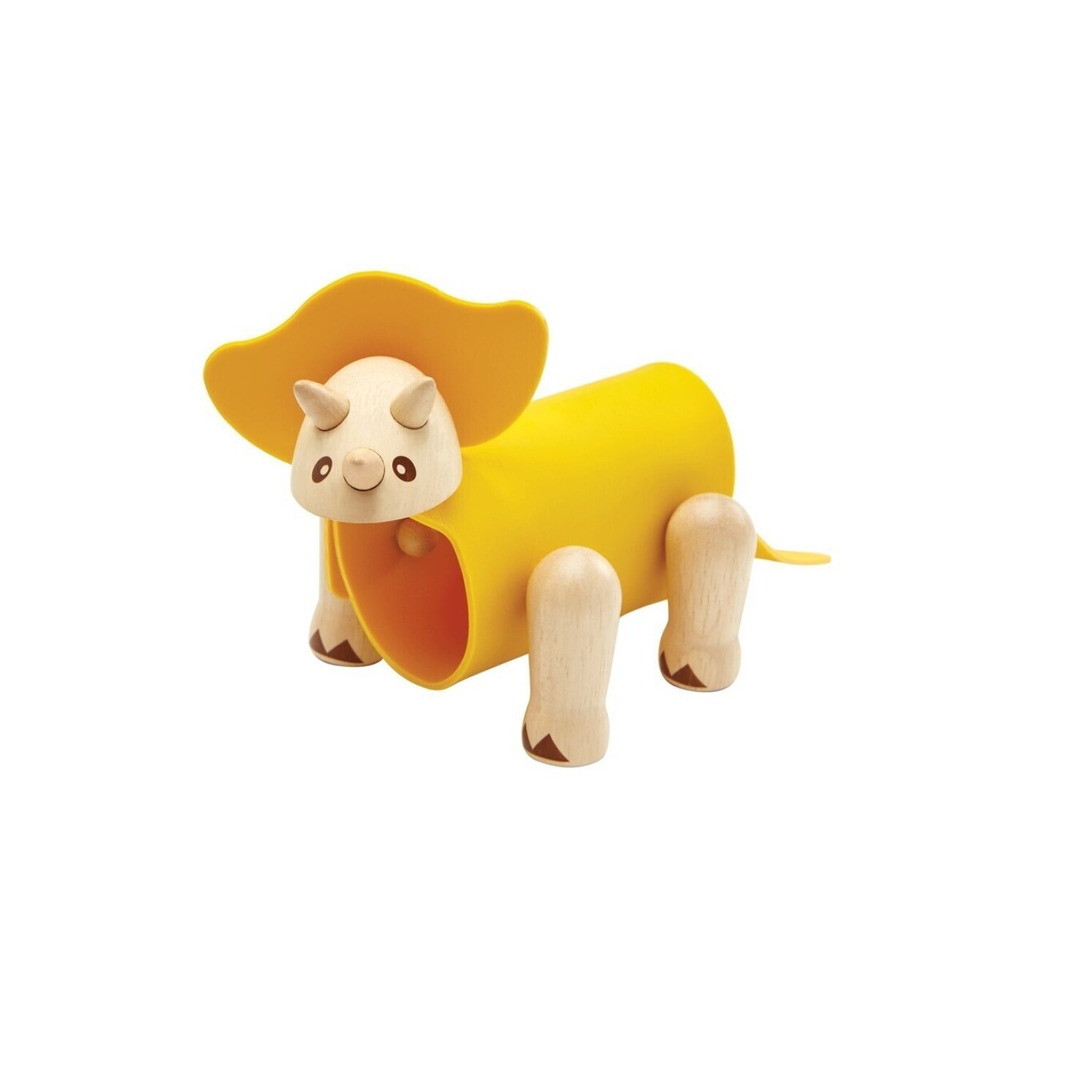 ¡Volvamos a la jungla prehistórica! La casa del Triceratops. Este herbívoro de tres cuernos puede transformarse en una forma tridimensional combinando variedad de diferentes partes, ambas de goma y madera. Lleva esta transformación más allá añadiendo materiales a tu elección con una pizca de imaginación. Incluye una ficha infográfica para combinar el aprendizaje con el juego
