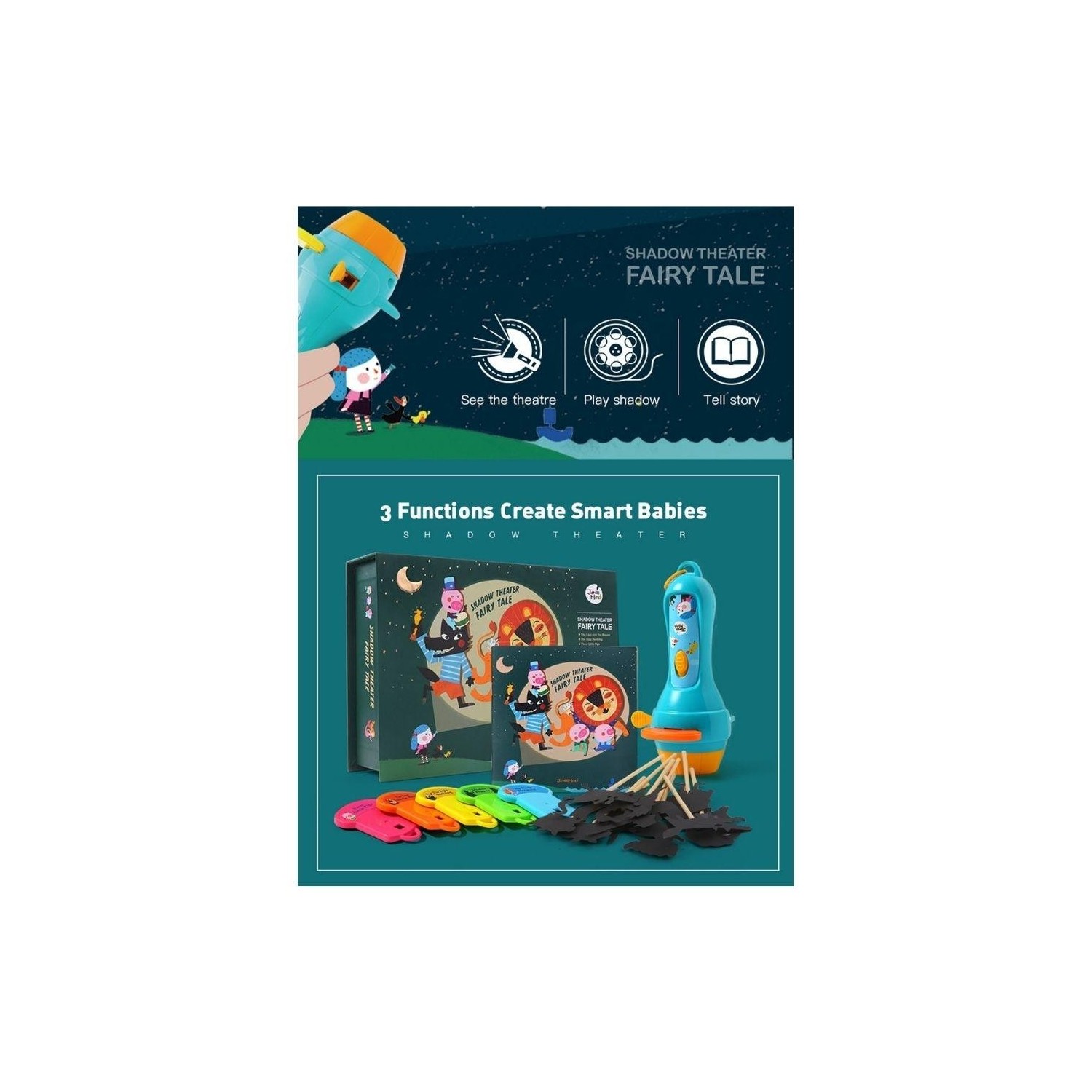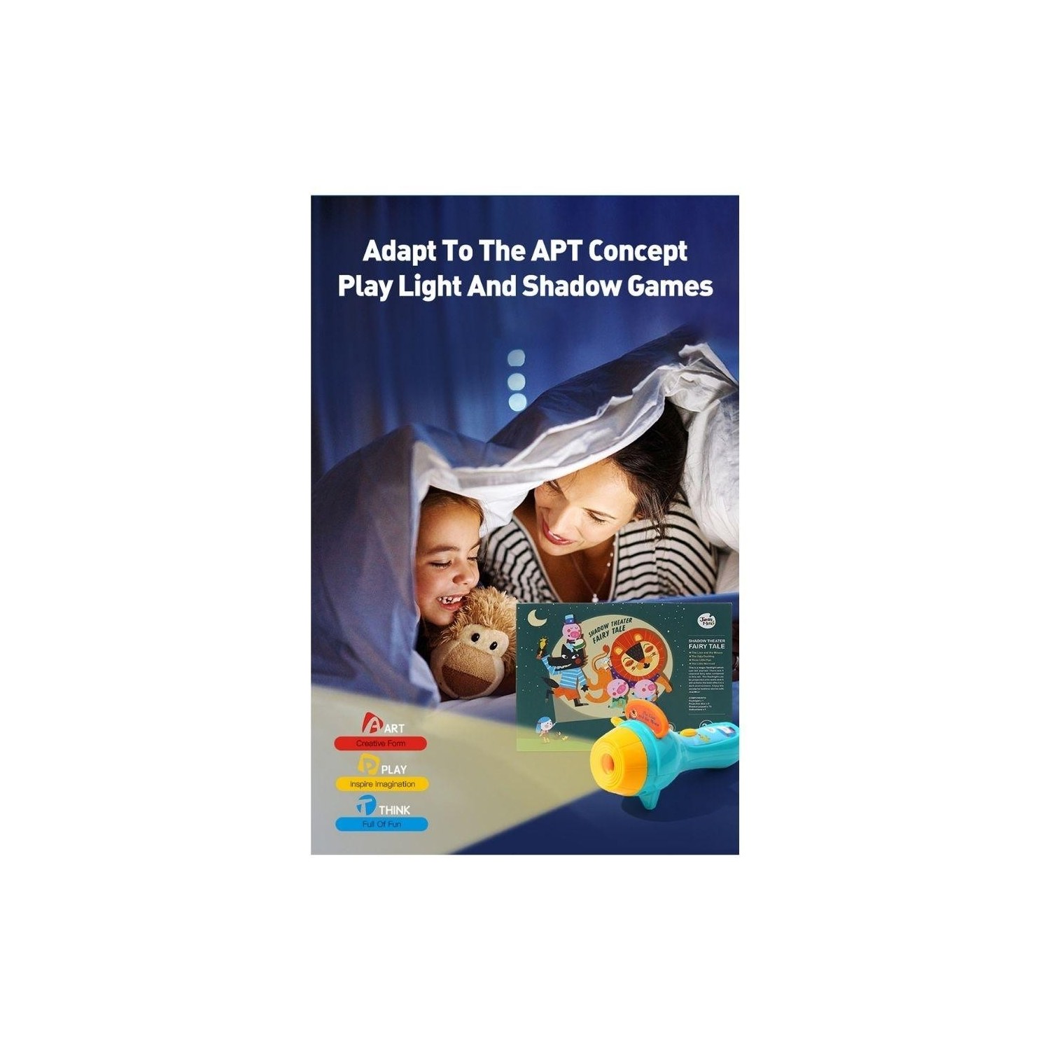 El set se completa con un libro ilustrado y figuras de sombras que amplían las posibilidades de juego: representar escenas, inventar relatos propios, dialogar y dar voz a los personajes. Una propuesta que fomenta el lenguaje, la escucha activa y el vínculo familiar.