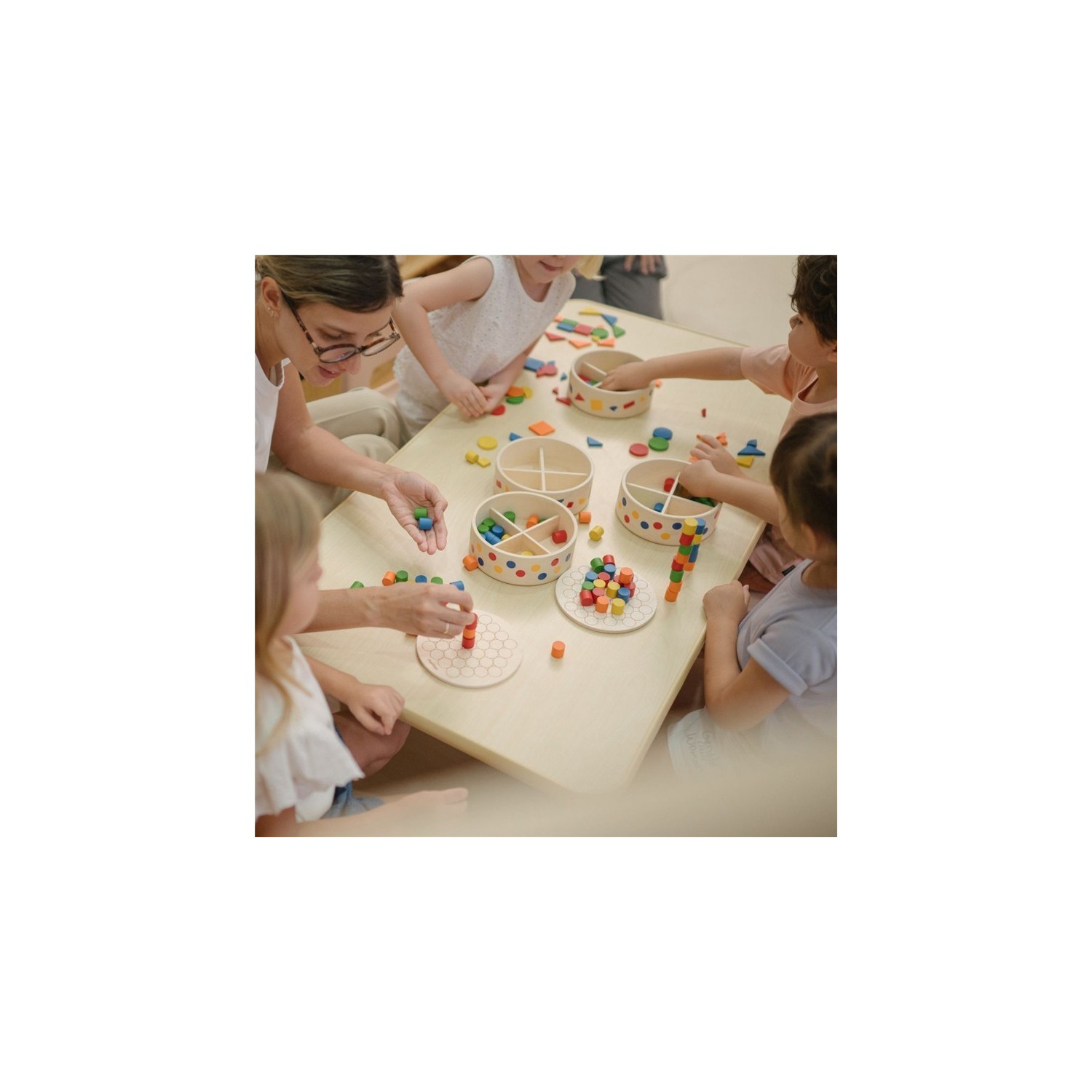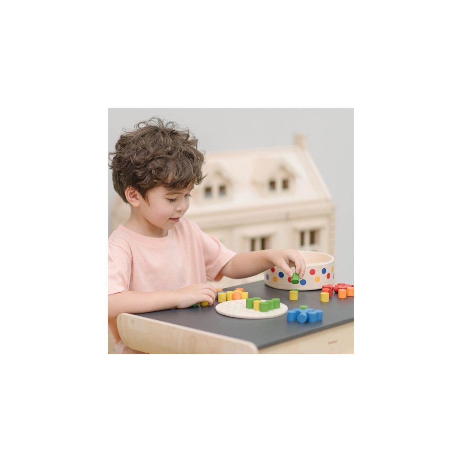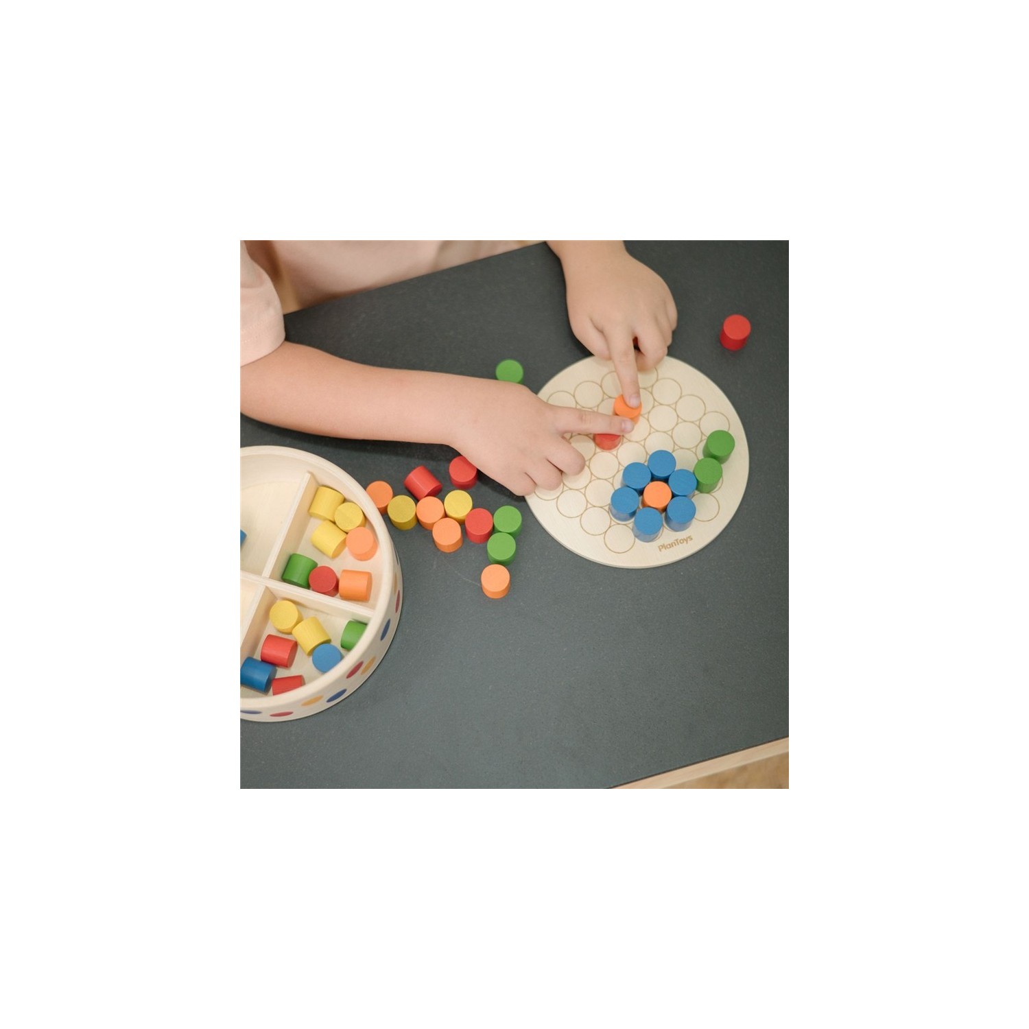 Fomenta la creatividad, el pensamiento sistemático y el desarrollo motor fino mientras los niños organizan clavijas de colores formando patrones, creando diseños tridimensionales. Esta actividad fortalece la coordinación ojo-mano, la destreza con los dedos y las habilidades matemáticas tempranas mediante la agrupación de colores, la simetría y la secuenciación.