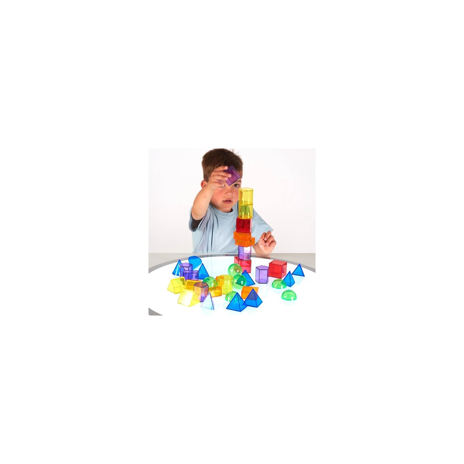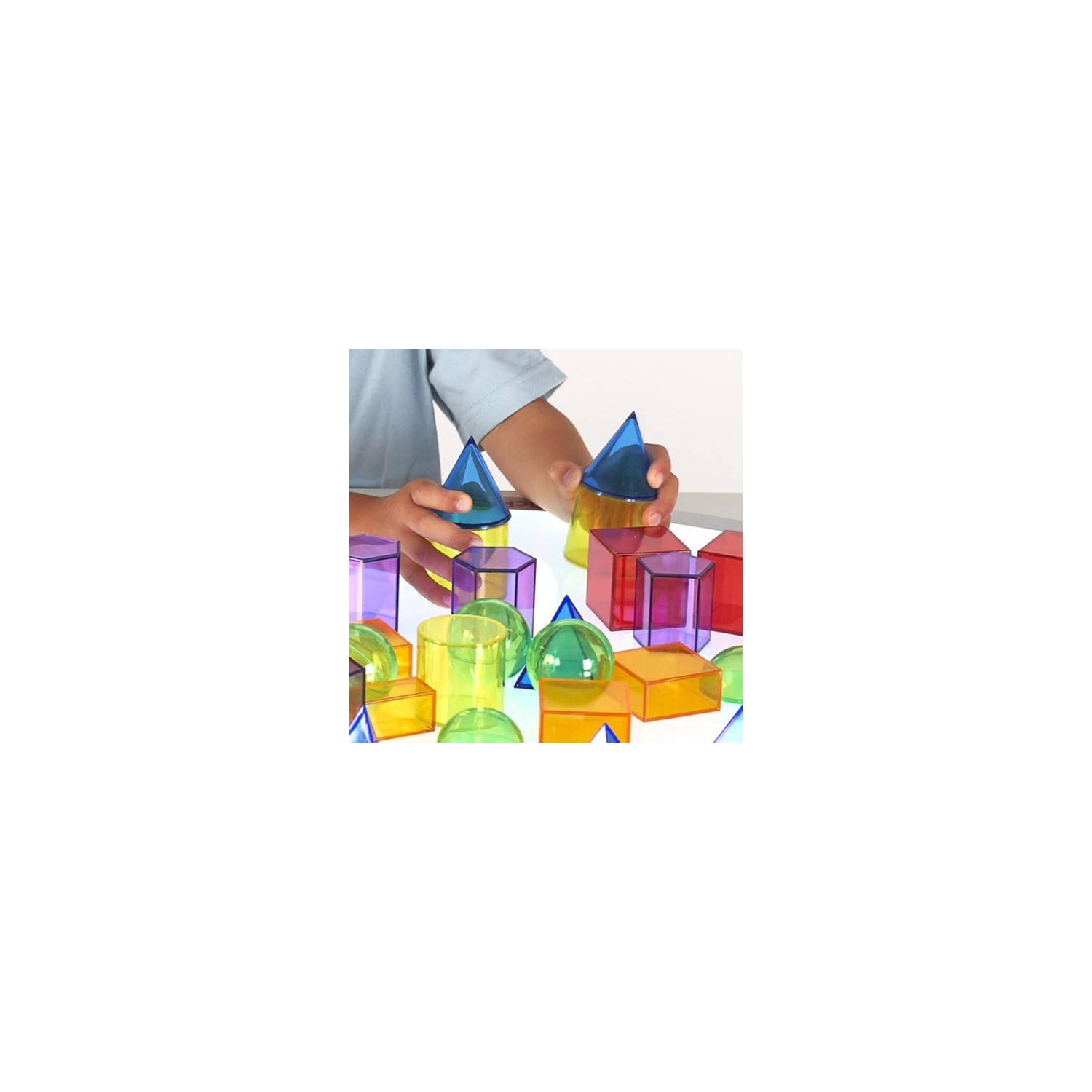Formas Geométricas Translúcidas es un conjunto de formas 3D acrílicas de color, perfecto para usar en un panel de luz, para aprender los nombres y características de diferentes formas y para aprender sobre colores y mezclas de colores.