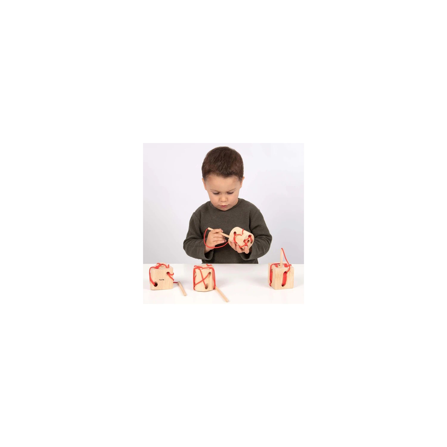 Las formas de enhebrar de madera ayudarán a su hijo a concentrarse en este desafío de enhebrado, desarrollando su destreza manual y coordinación mano-ojo mientras entrelazan el hilo dentro y fuera de los agujeros del bloque de madera.