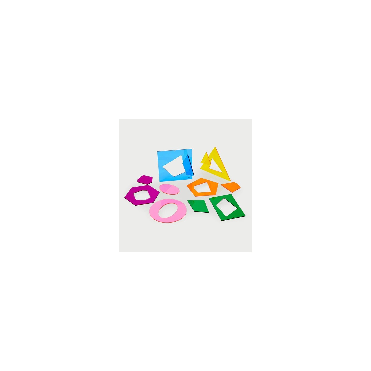 El juego incluye: 12 formas acrílicas en azul, verde, amarillo, rosa, naranja y morado.