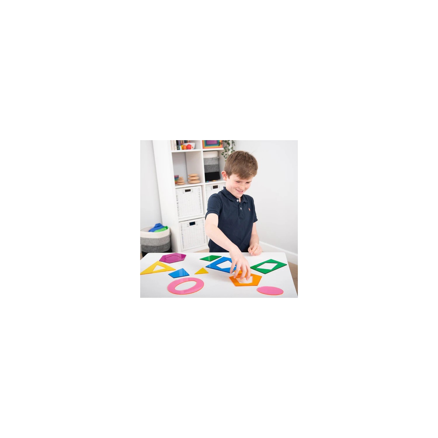 La apariencia colorida y translúcida de las formas las hace ideales para mezclar colores y usarlas en un panel de luz. Su tamaño significa que son fáciles de manipular, lo que facilita que su hijo identifique formas y colores, los utilice para juegos de combinación o creación de patrones o plantillas para dibujar y colorear.