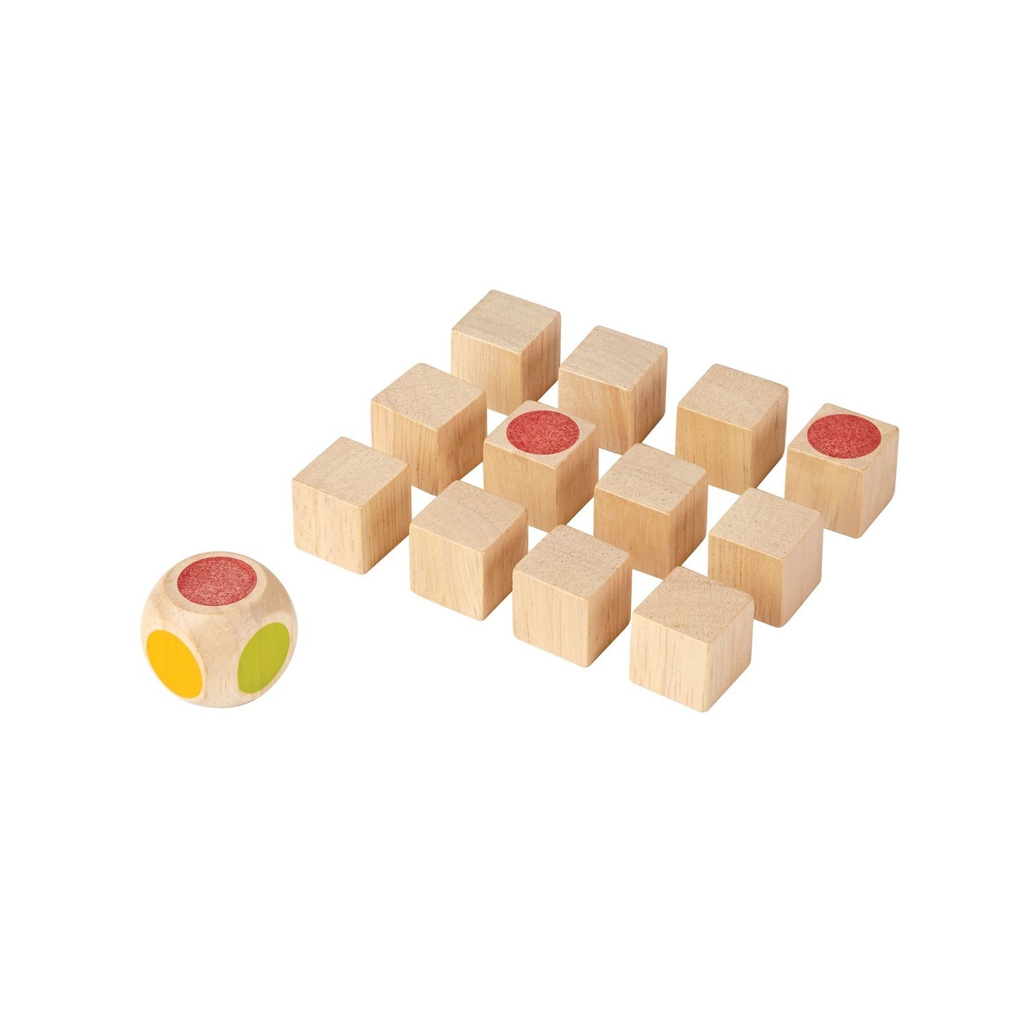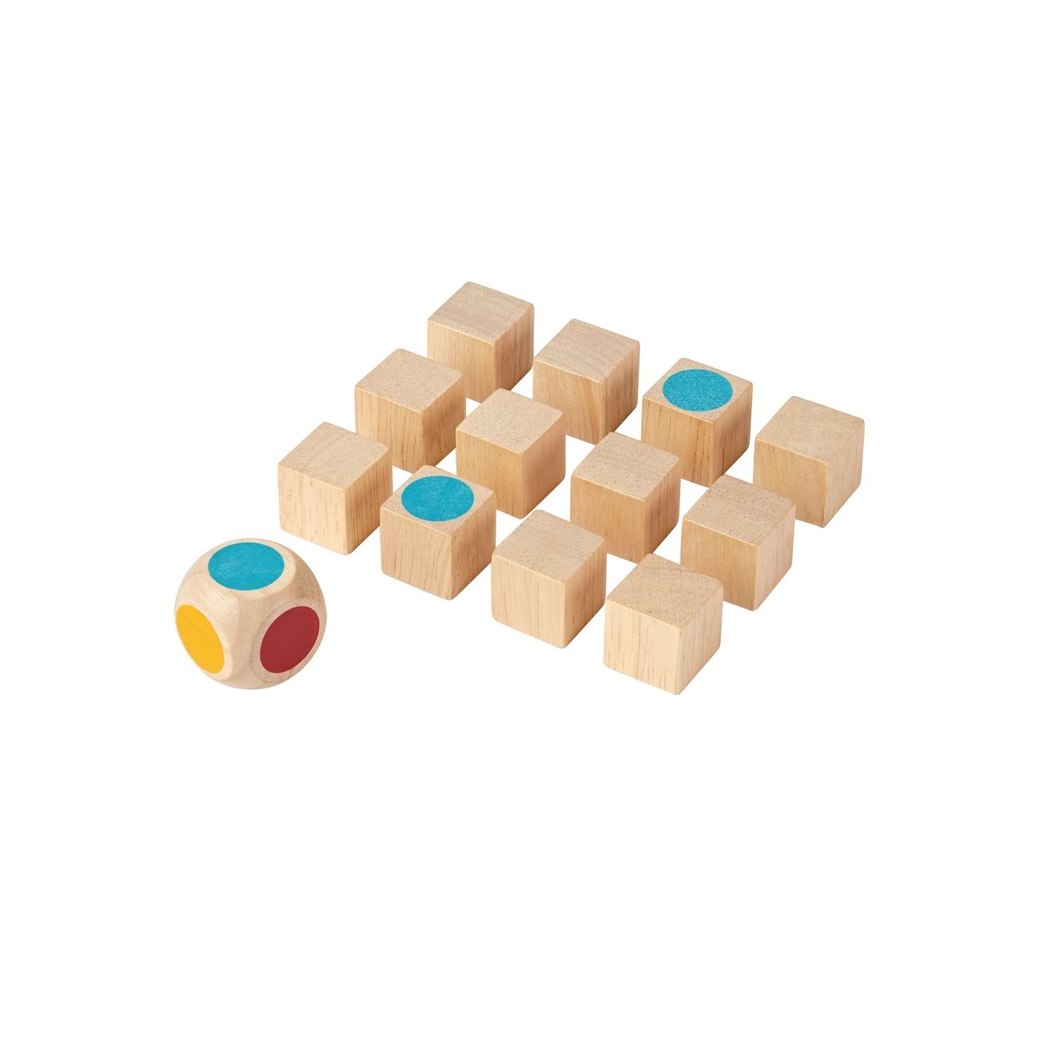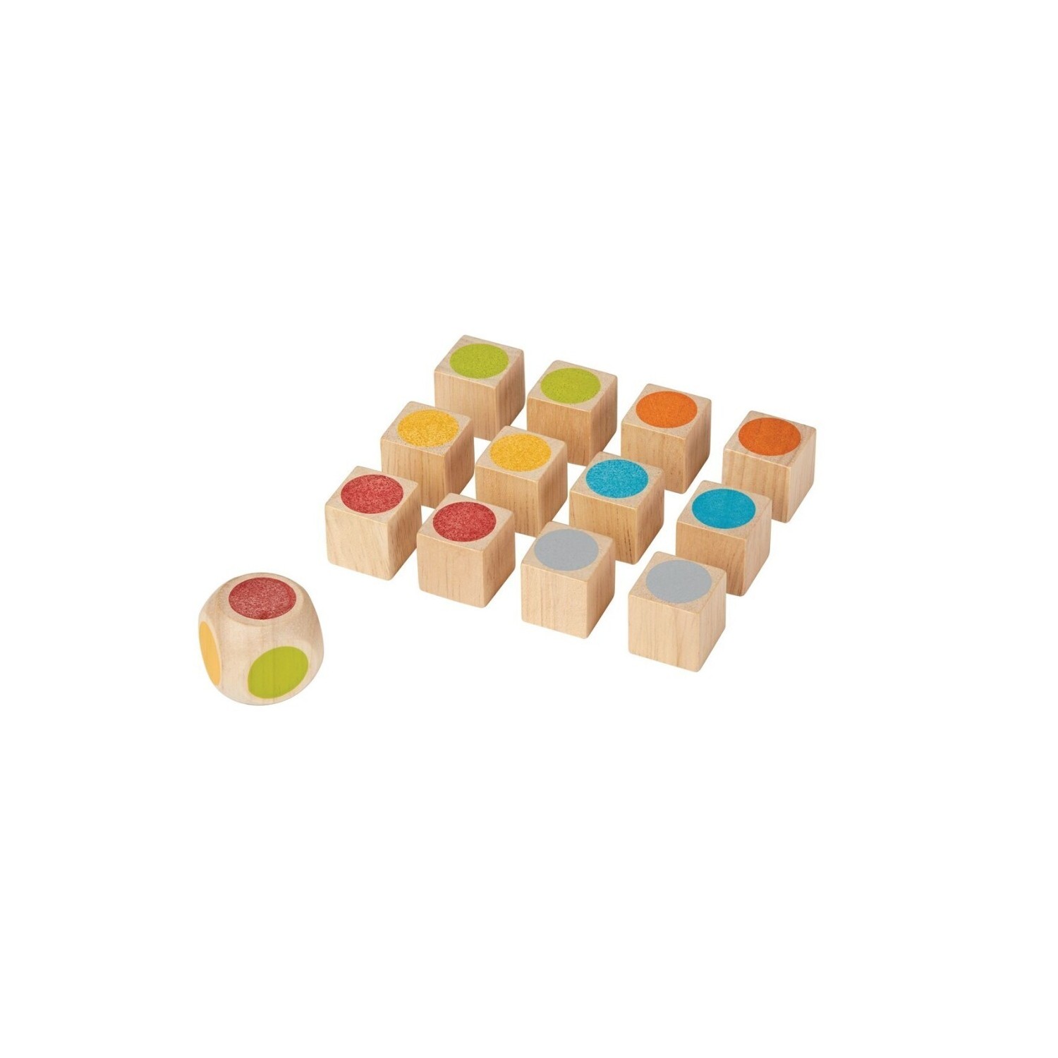 Recuerda la posición de todos los colores y luego da la vuelta a las fichas. Tira los dados y mira qué color sale. Trata de encontrar el color que corresponde a los dados girando las fichas. El jugador que pueda recoger la mayor cantidad de fichas es el ganador. Ideal para 1-2 jugadores