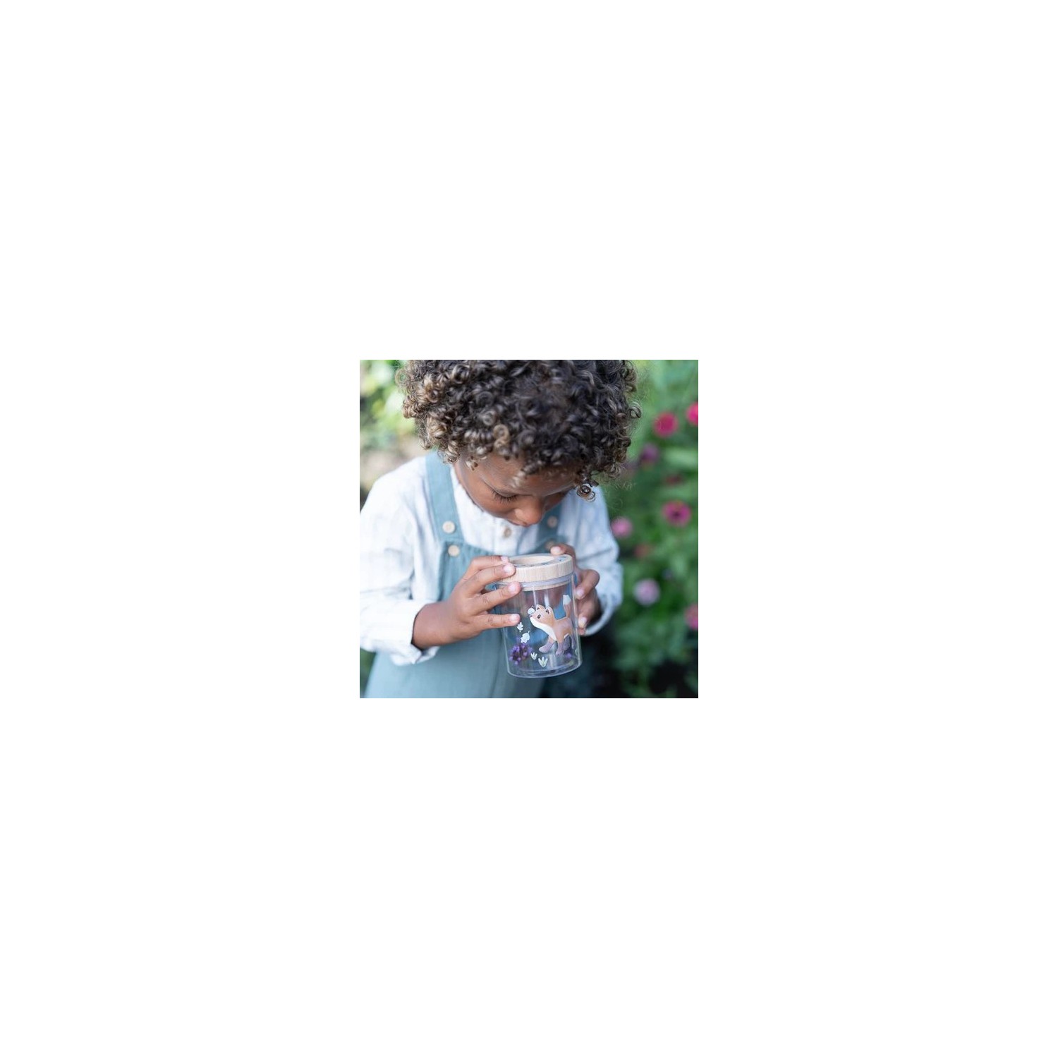 ¡Descubre el mundo de los insectos con este práctico tarro para insectos! La tapa de madera, equipada con una lupa, permite ver claramente los detalles más pequeños. La tapa se puede quitar fácilmente y el tarro está decorado con alegres ilustraciones de los Amigos del Bosque. Se incluye una tarjeta de insectos para marcar todos los insectos. El plástico transparente permite ver los insectos desde todos los ángulos, mientras que los orificios de ventilación proporcionan ventilación. ¡Perfecto para niños curiosos que quieren explorar la naturaleza!