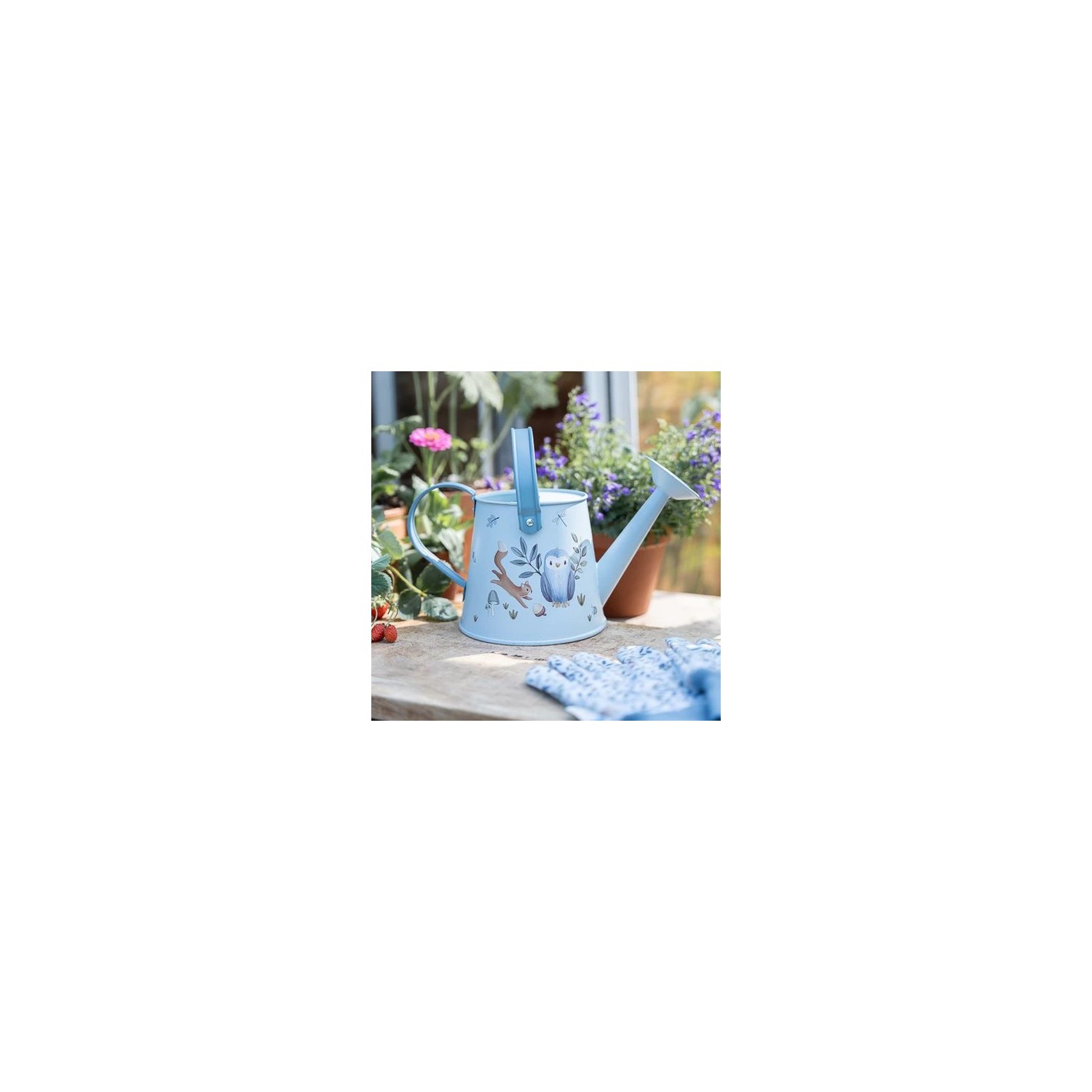 ¡Añade diversión a la jardinería con la regadera Forest Friends! Esta regadera metálica, decorada con ilustraciones coloridas del tema de los Amigos del Bosque, tiene una forma juguetona. La manilla superior plegable y la lateral facilitan su uso. La gran abertura facilita el llenado y el aspersor ancho distribuye el agua de forma uniforme. ¡Ideal para cualquier jardinero joven!
