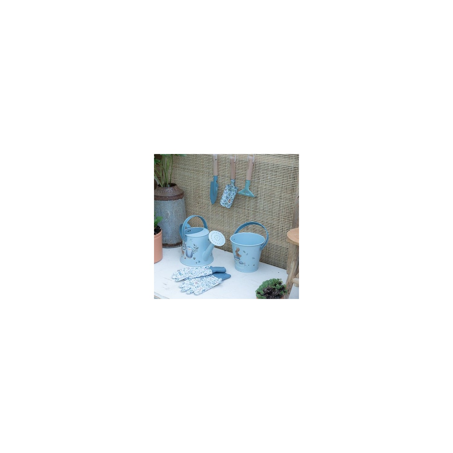¡Descubre el conjunto de herramientas perfecto para pequeños jardineros con este precioso juego de jardín de la colección Forest Friends! El juego consta de dos paletas y un rastrillo, todos hechos de metal resistente con asas de madera para un agarre cómodo. Cada pieza está adornada con preciosas ilustraciones y colores de la colección, que combinan perfectamente con las aventuras de tu pequeño en el jardín. Con los cables prácticos, puedes colgar fácilmente las herramientas después de la jardinería. Perfecto para manos pequeñas.