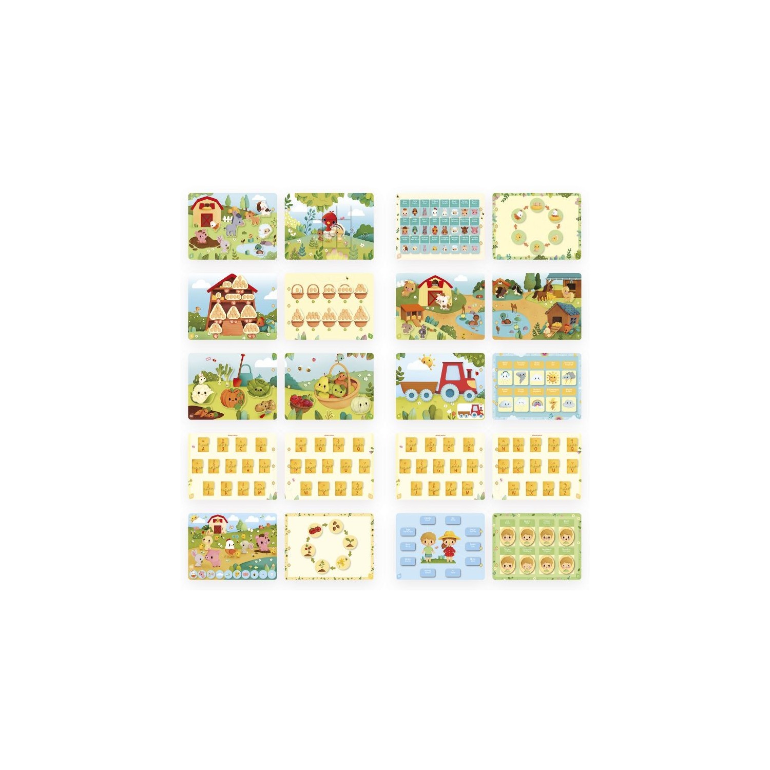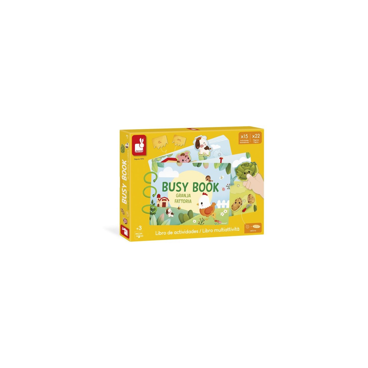 Libro evolutivo inspirado en la granja y presentado en una bonita caja de regalo. Consta de 20 páginas de divertidas actividades. Los más pequeños descubrirán los animales de la granja, su hábitat, el ciclo de vida de la gallina, las frutas y verduras del huerto y los mayores podrán aprender los números y el abecedario (minúsculas y mayúsculas) mientras se divierten. Sus 3 anillas de plástico extraíbles permiten a los padres cambiar el interior del libro eligiendo las páginas adecuadas a la edad del niño a medida que crece. Desarrolla la motricidad fina y el aprendizaje en general. Presentado en cartón FSCTM para niños a partir de 3 años.