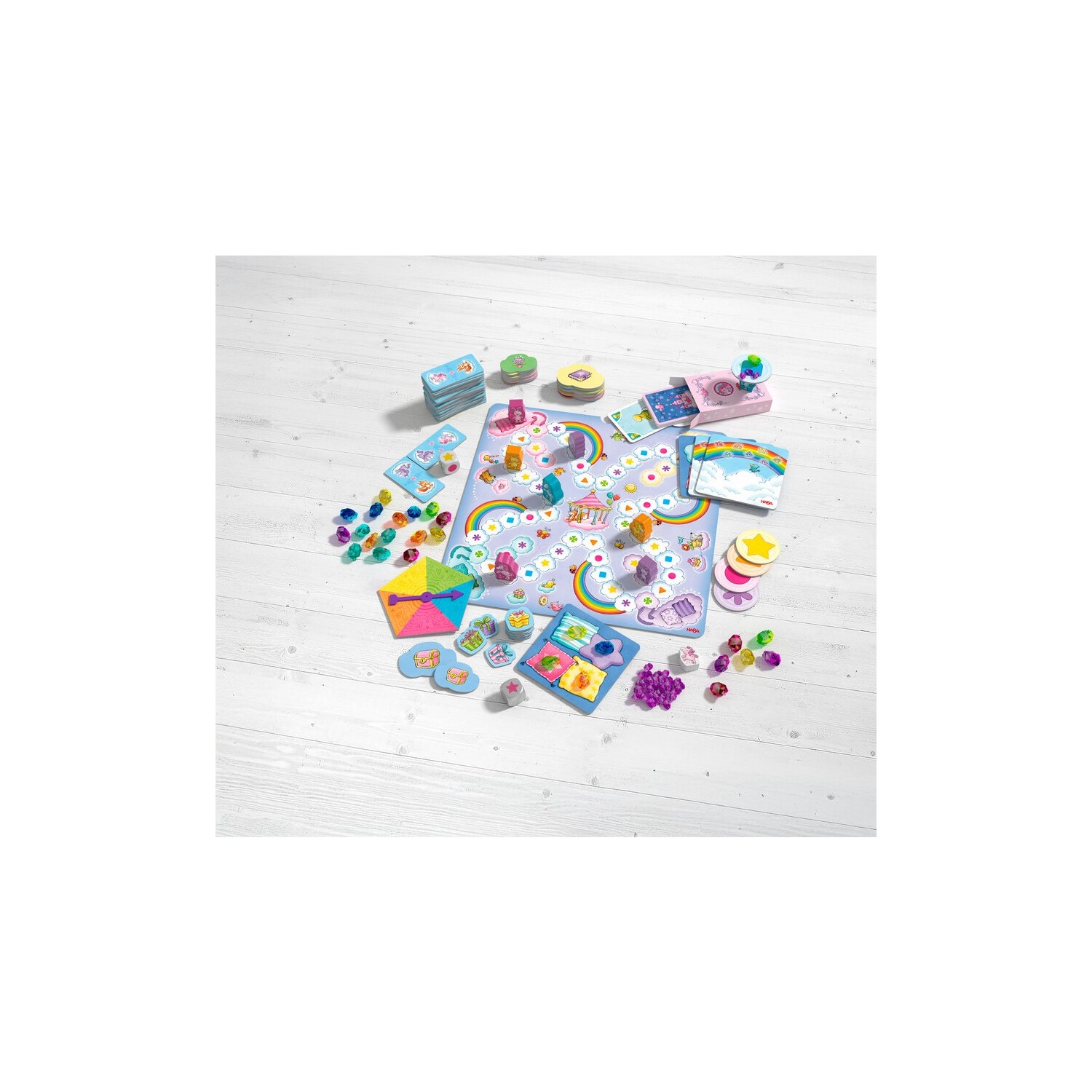 Para celebrar el décimo aniversario del Unicornio Destello HABA ha reunido una mágica colección de juegos de dados, de acumulación de composición, de memoria, etc. Rosalie y sus amigos unicornios están de fiesta y no para de jugar, así que únete a ellos en unos de estos maravillosos juegos.