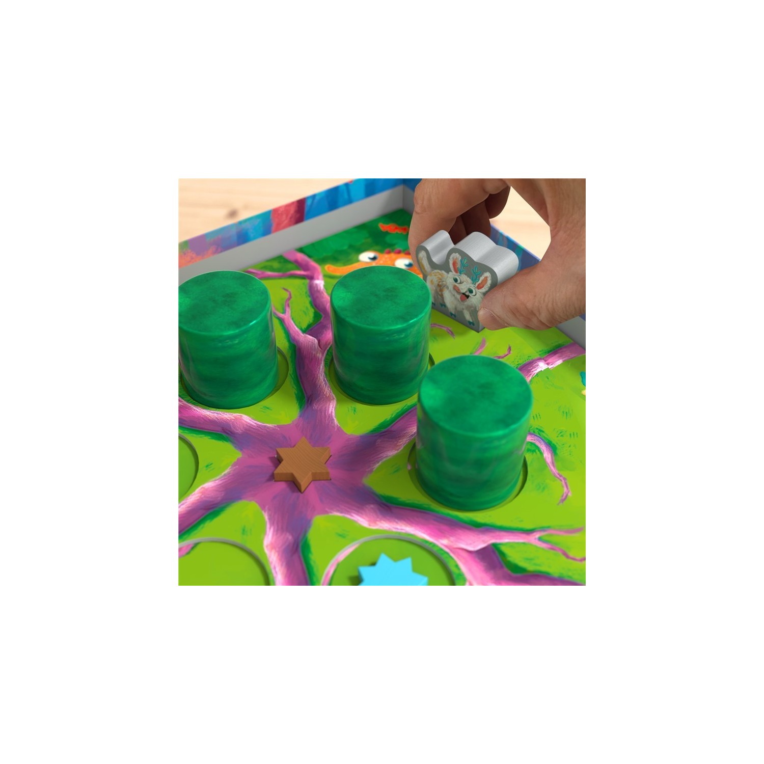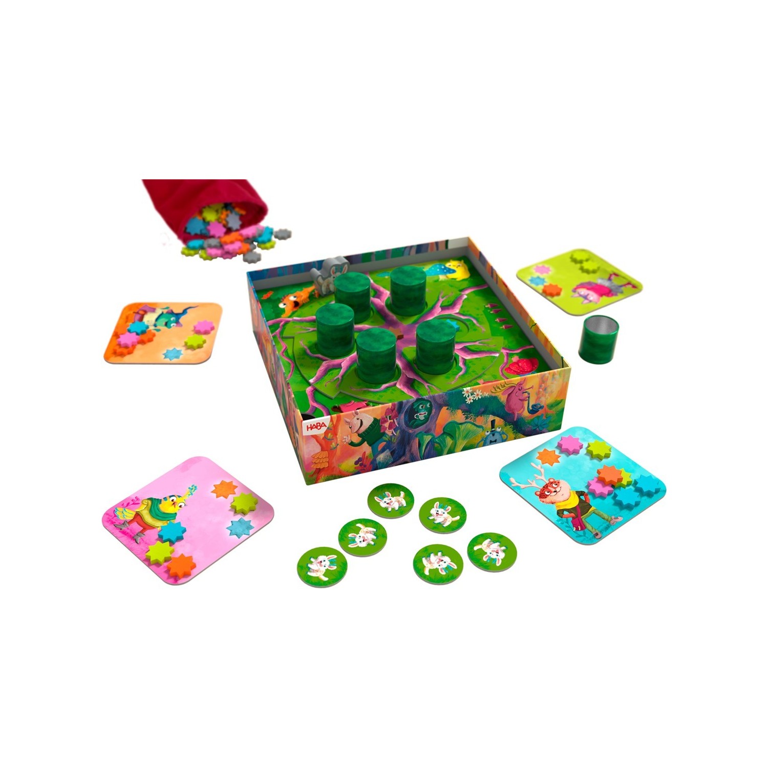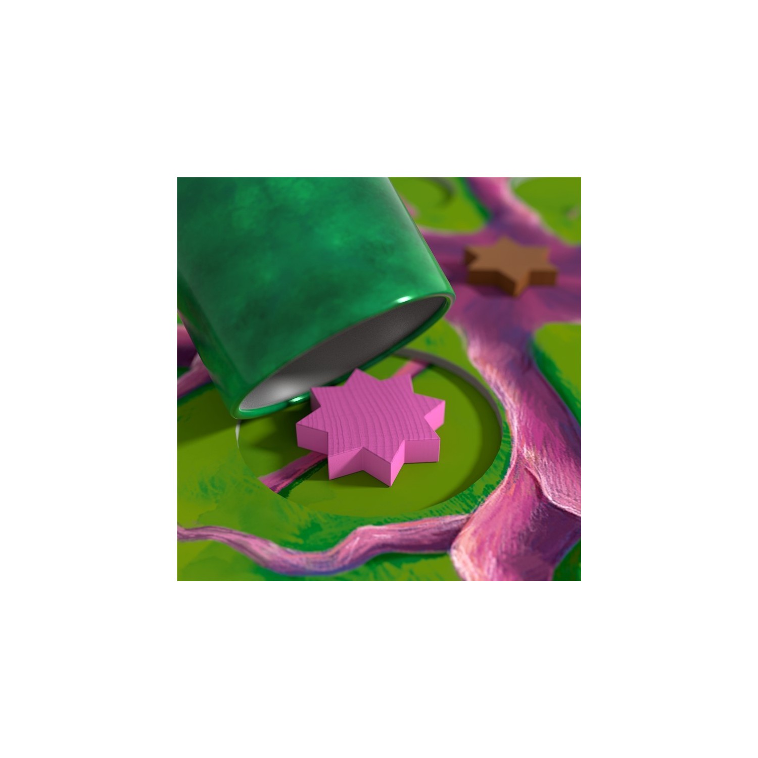 La caja sirve de tablero de juego con un fascinante mecanismo de movimiento. Incluye 48 estrellas de colores de madera