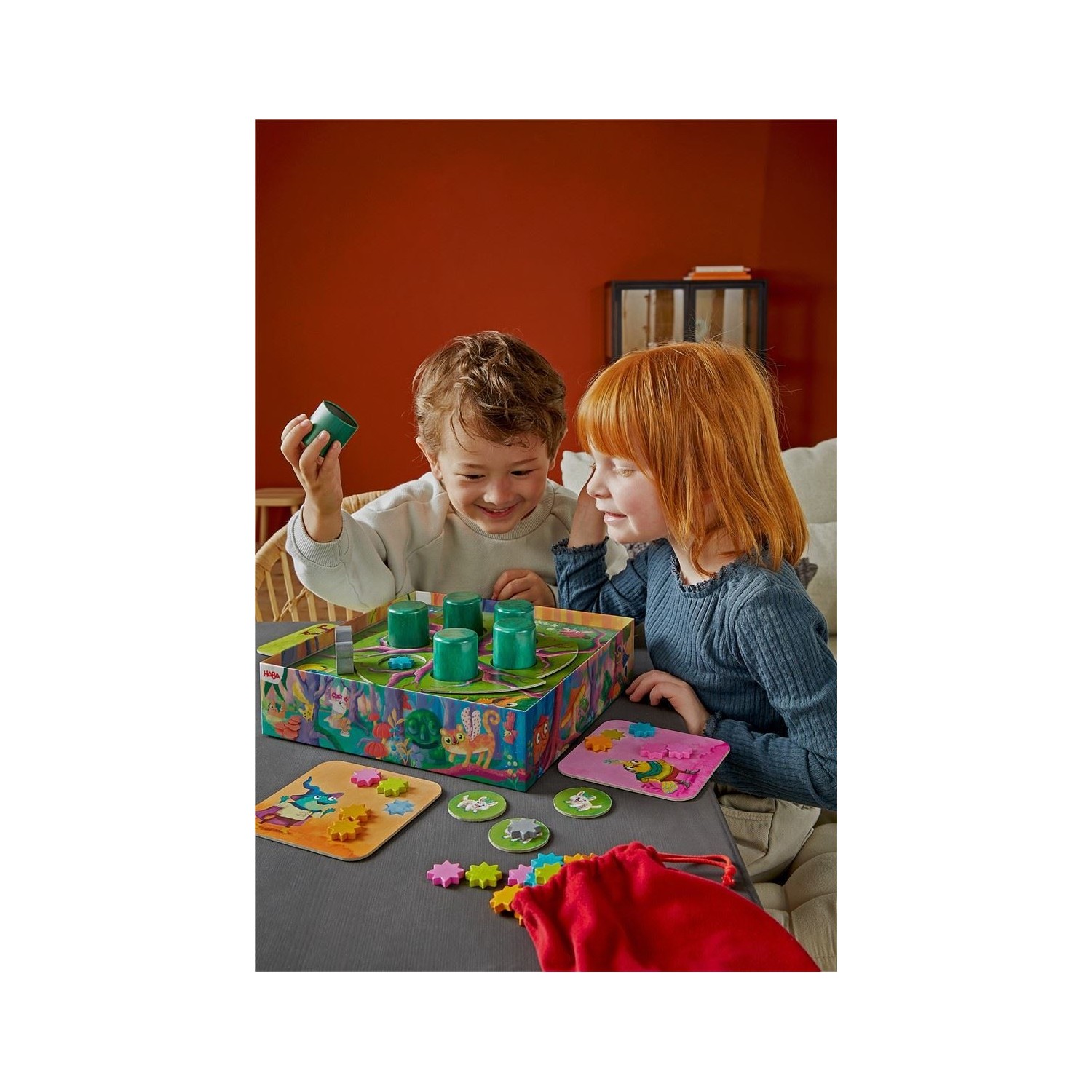 Los niños/as intentan, con un poco suerte y memoria, encontrar las estrellas que faltan en sus respectivos tableros. El jugador quien recoge más estrellas gana.