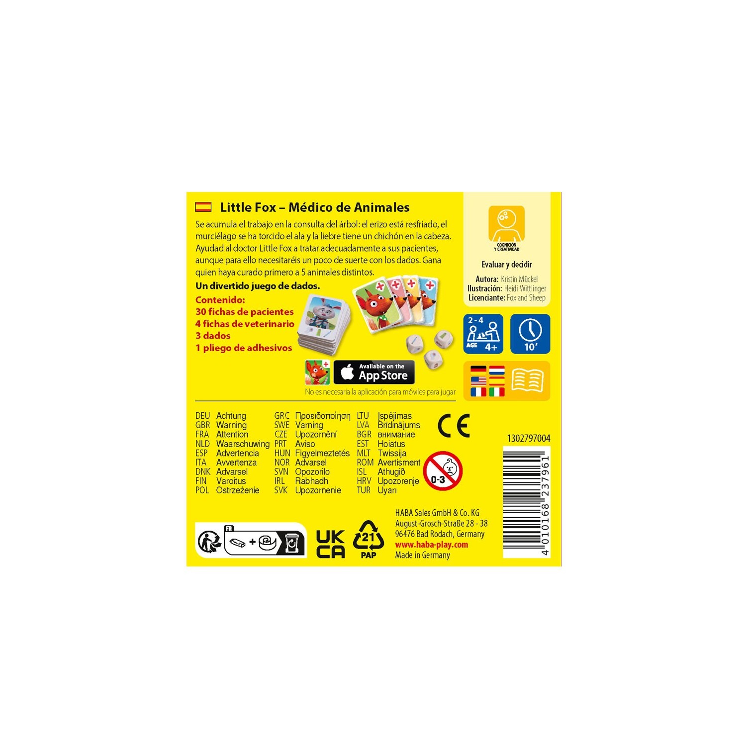 Juego de estrategia en el que los jugadores/as deben ayudar al doctor Little Fox a curar a sus pacientes. Para ello, con tres tiradas de dados por turno, se debe lograr la combinación correcta que permite tratar a los animales de las fichas. Quien primero atienda a 5 tipos de animales diferente gana.