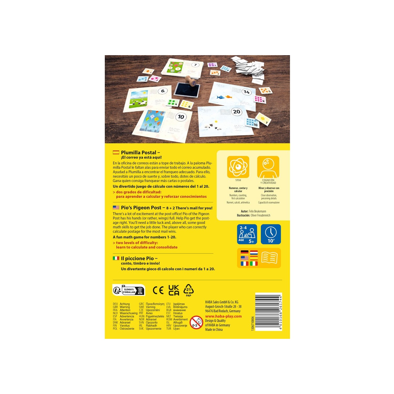 Juego infantil de mesa, juego de mesa a partir de 5 años, juego HABA, HABA, Novedades HABA, juego educativo, juego de cálculo, juego matemático, juego de correos, juego de número, juego de franquear cartas, Vuelta al cole