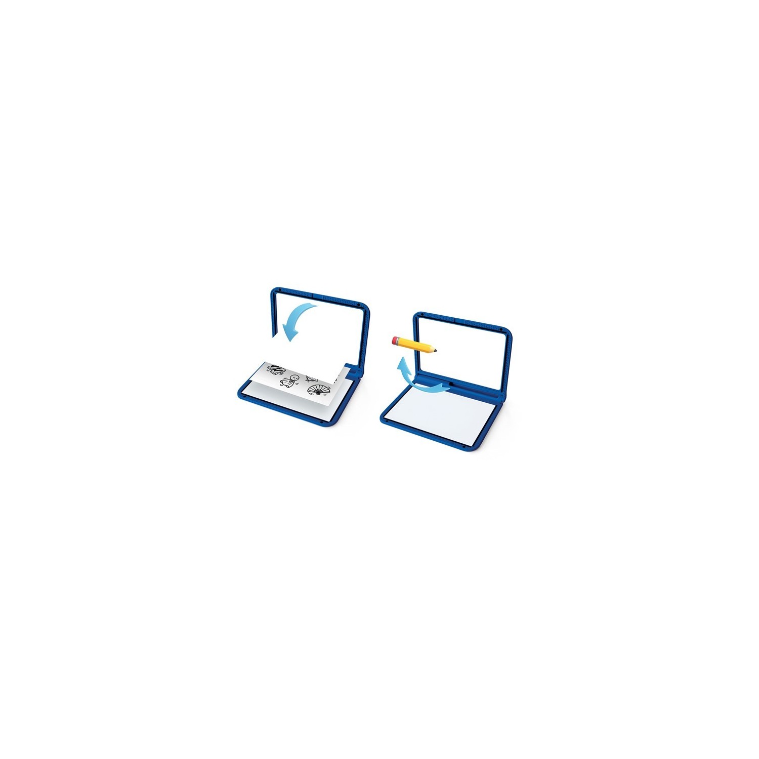 Tu hijo podrá reproducir o calcar fielmente letras, números o dibujos existentes. De doble cara, la parte posterior también funciona como una tableta de dibujo negra con un efecto neón que resalta los colores del dibujo durante la noche.
