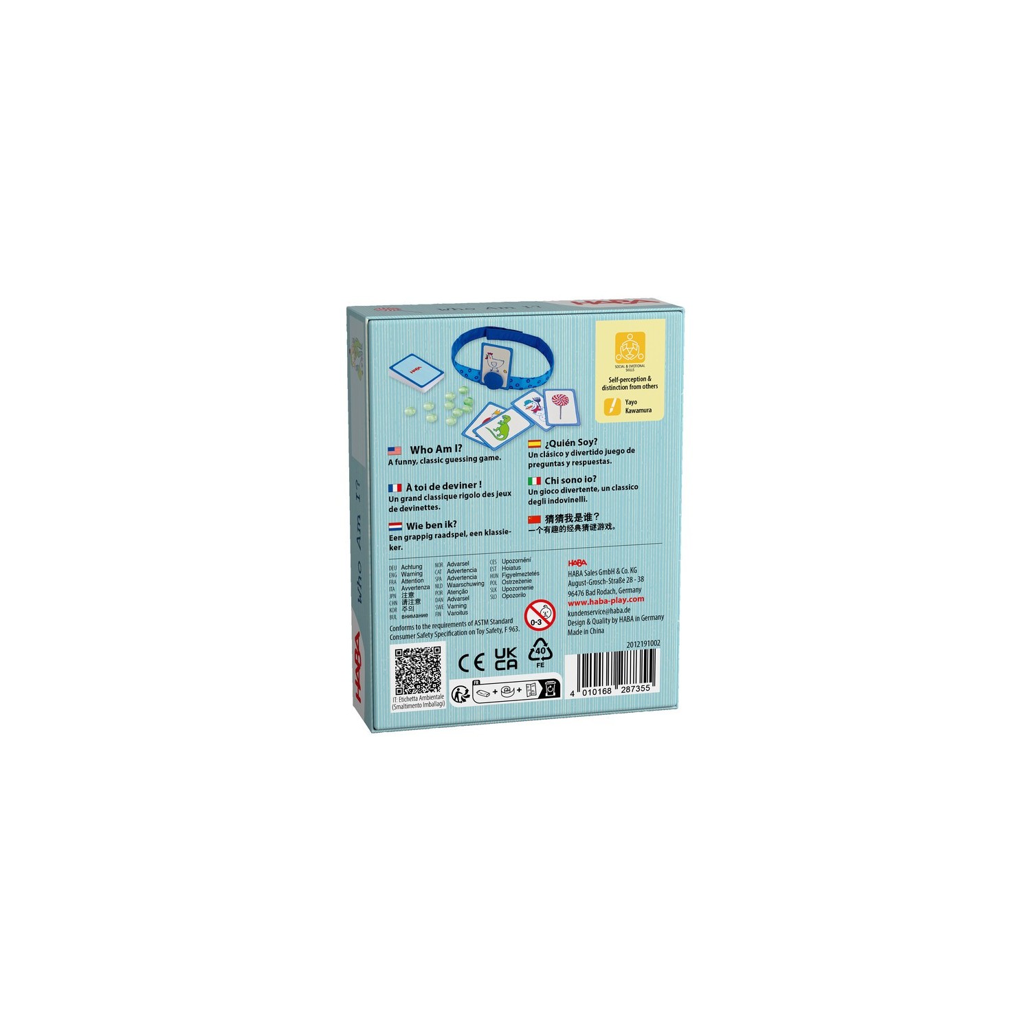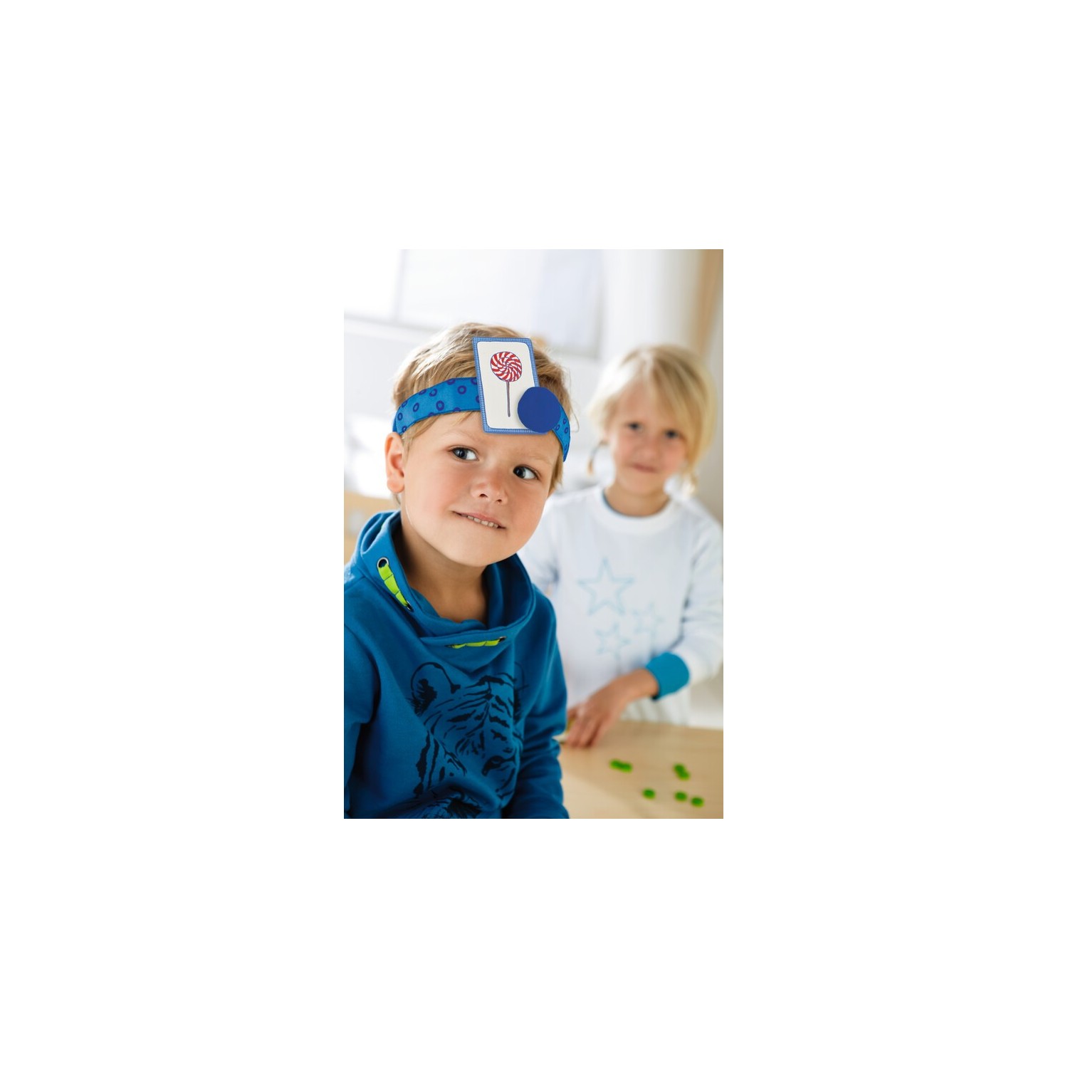Nuevo formato del clásico de HABA. Juego de preguntas en formato pequeño y caja de lata, en el que por turnos debemos adivinar el dibujo de la carta que llevamos en la cabeza. Para adivinarlo solo se pueden formular preguntas con respuesta sí o no. Gana quien consigue más puntos.