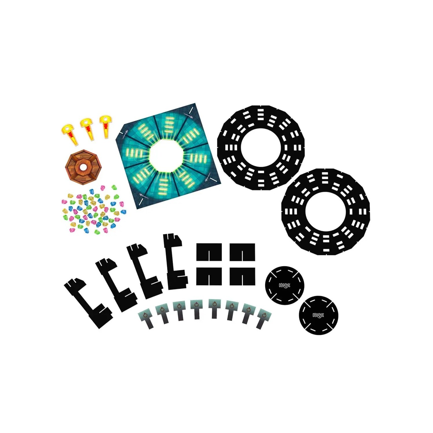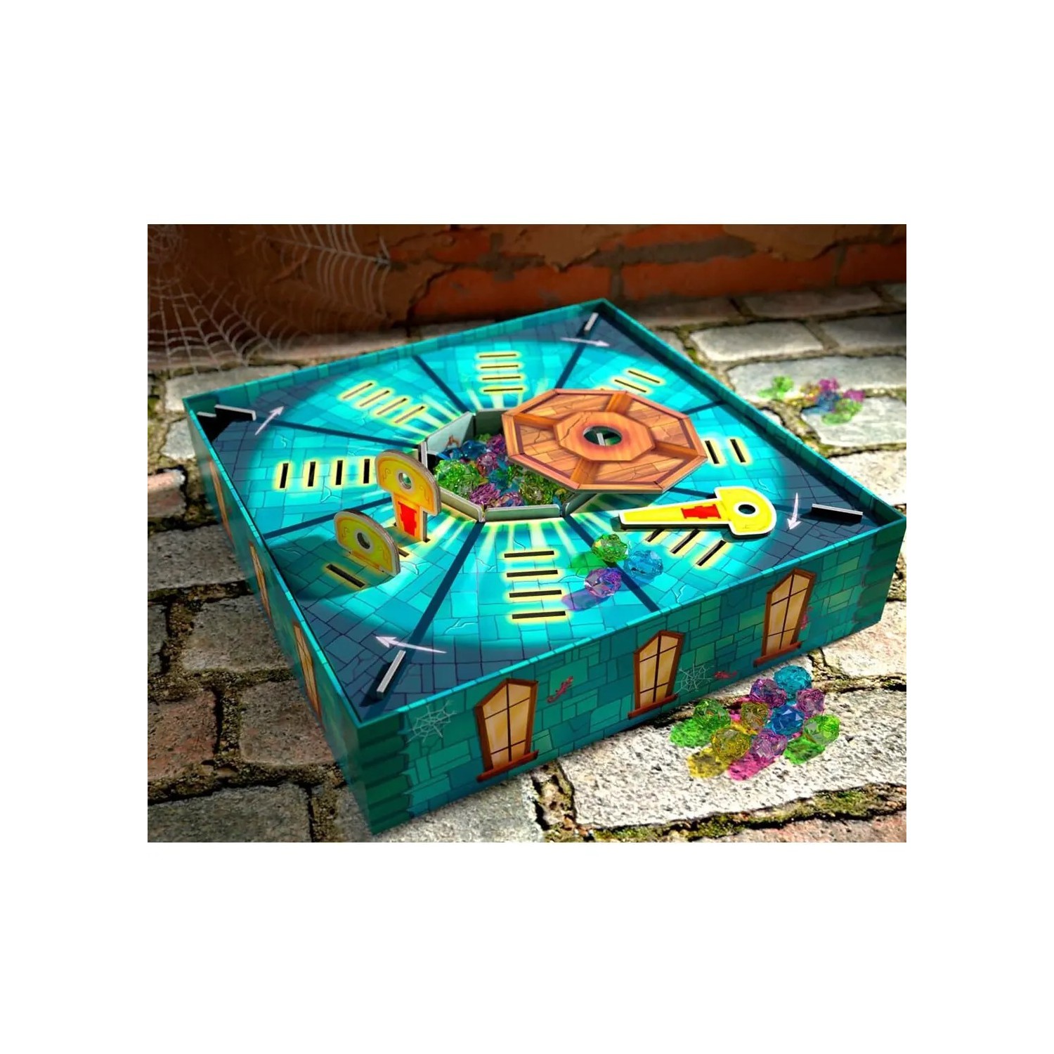Juego en el que por turnos se deben introducir las llaves doradas en el tablero de forma estratégica, para conseguir piedras de la cámara del tesoro. En función de lo arriesgados/as que sean, los jugadores/as podrán hacerse más ricos/as o perderlo todo. Gana quien reúna más piedras preciosas.