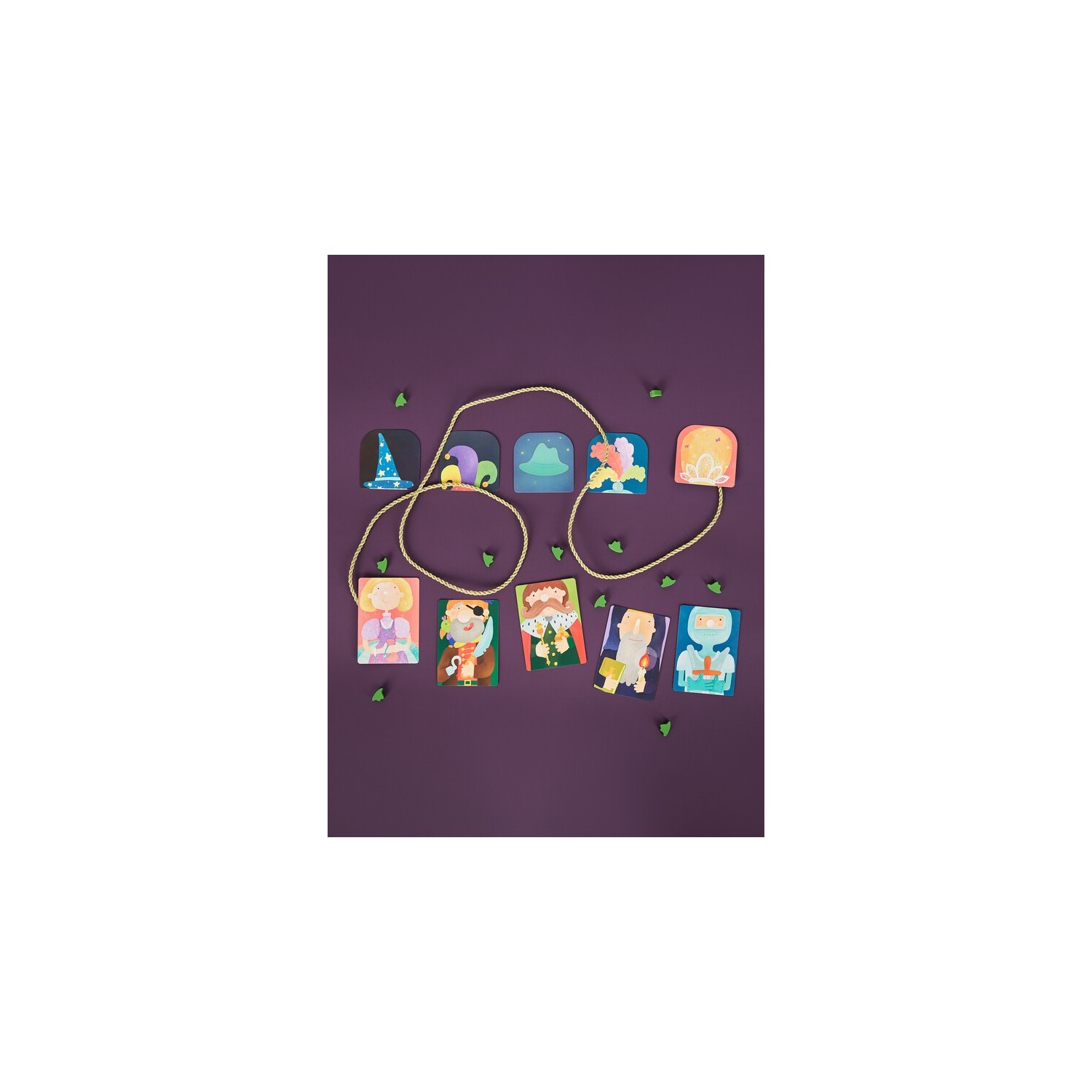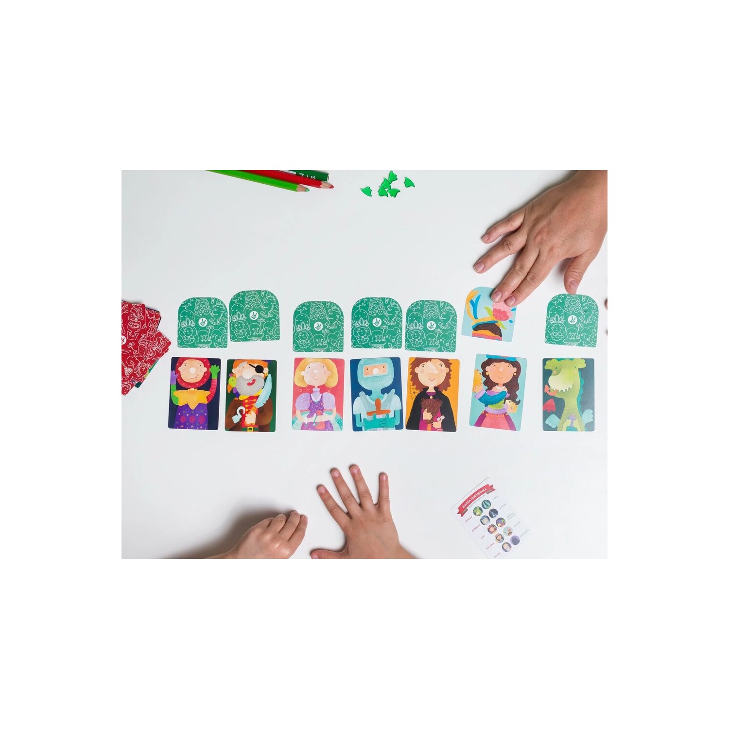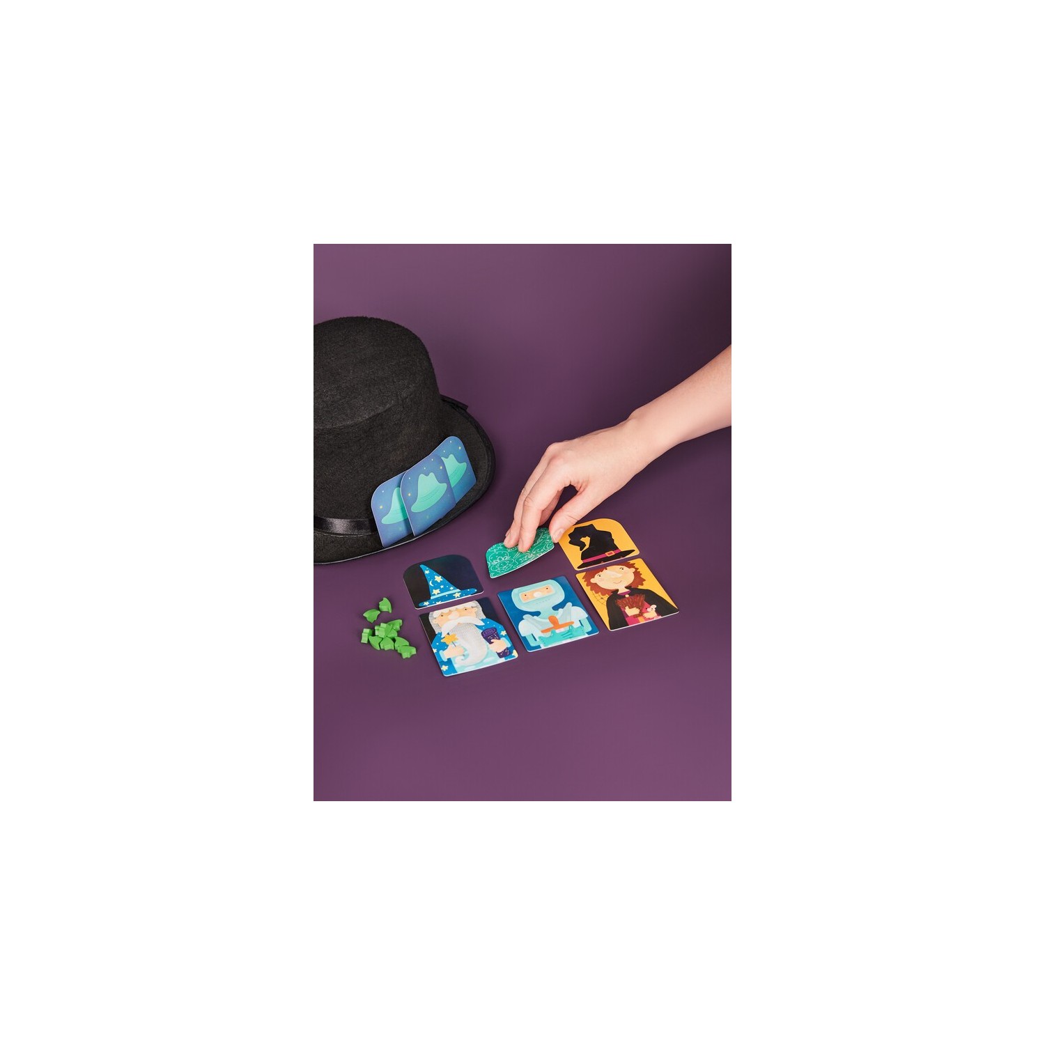¡Algo extraño ha ocurrido en el Castillo! Por la noche, alguien cambió de sitio los sombreros de sus habitantes: el mago se ve ridículo con los cuernos de dragón en la cabeza, y la princesa parece una bruja con ese gorro. Así que, ¡tenemos que ayudarlos con este desastre! Por turnos se destapan cartas de sombrero en secreto, se cambian cartas de posición o se destapan lan cartas para conseguir el máximo de parejas. Además para ganar aquí no se necesita únicamente buena memoria, si no unas buenas dotes para el faroleo.