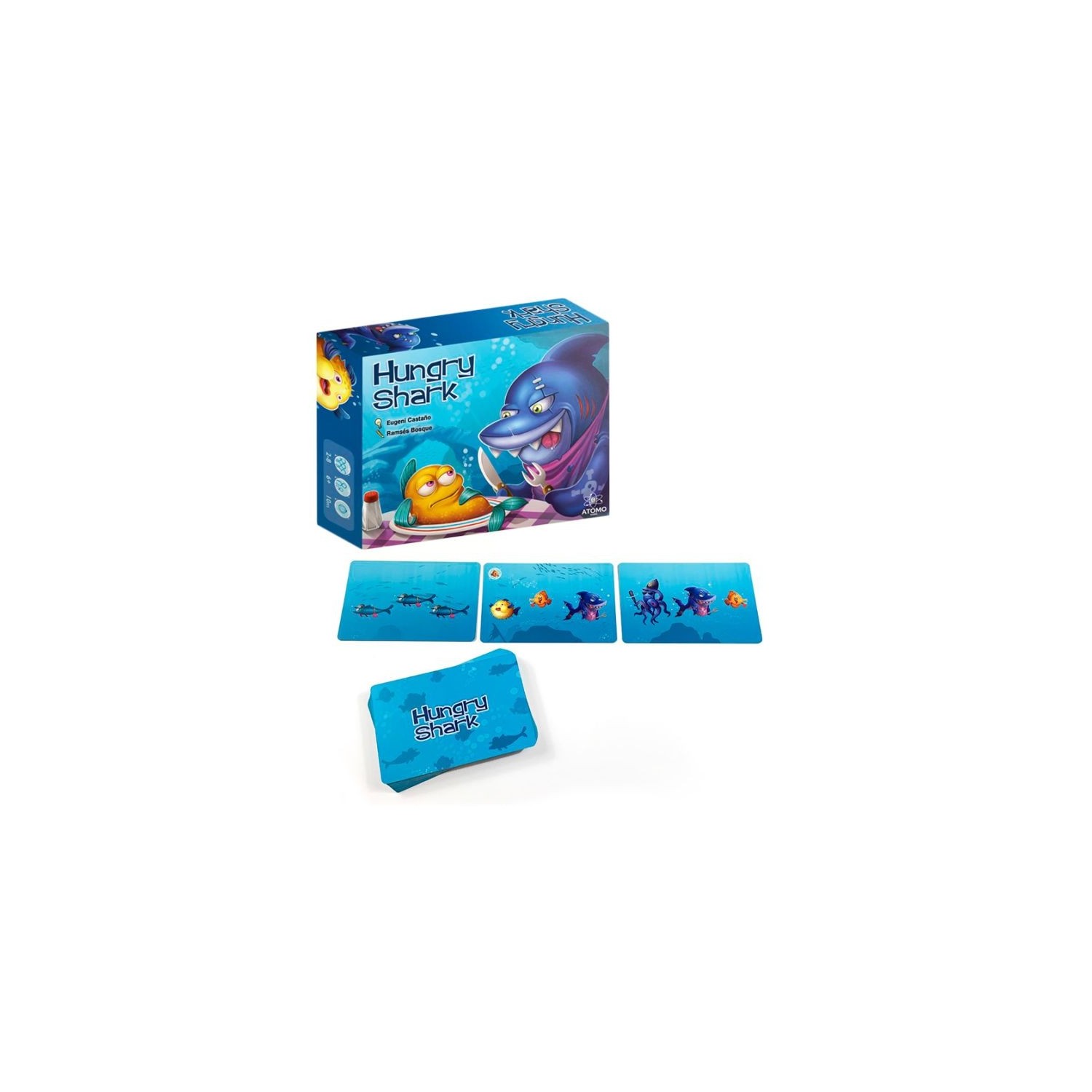 Juego de observación y rapidez visual con temática de tiburones, Hungy Shark de Átomo Games.