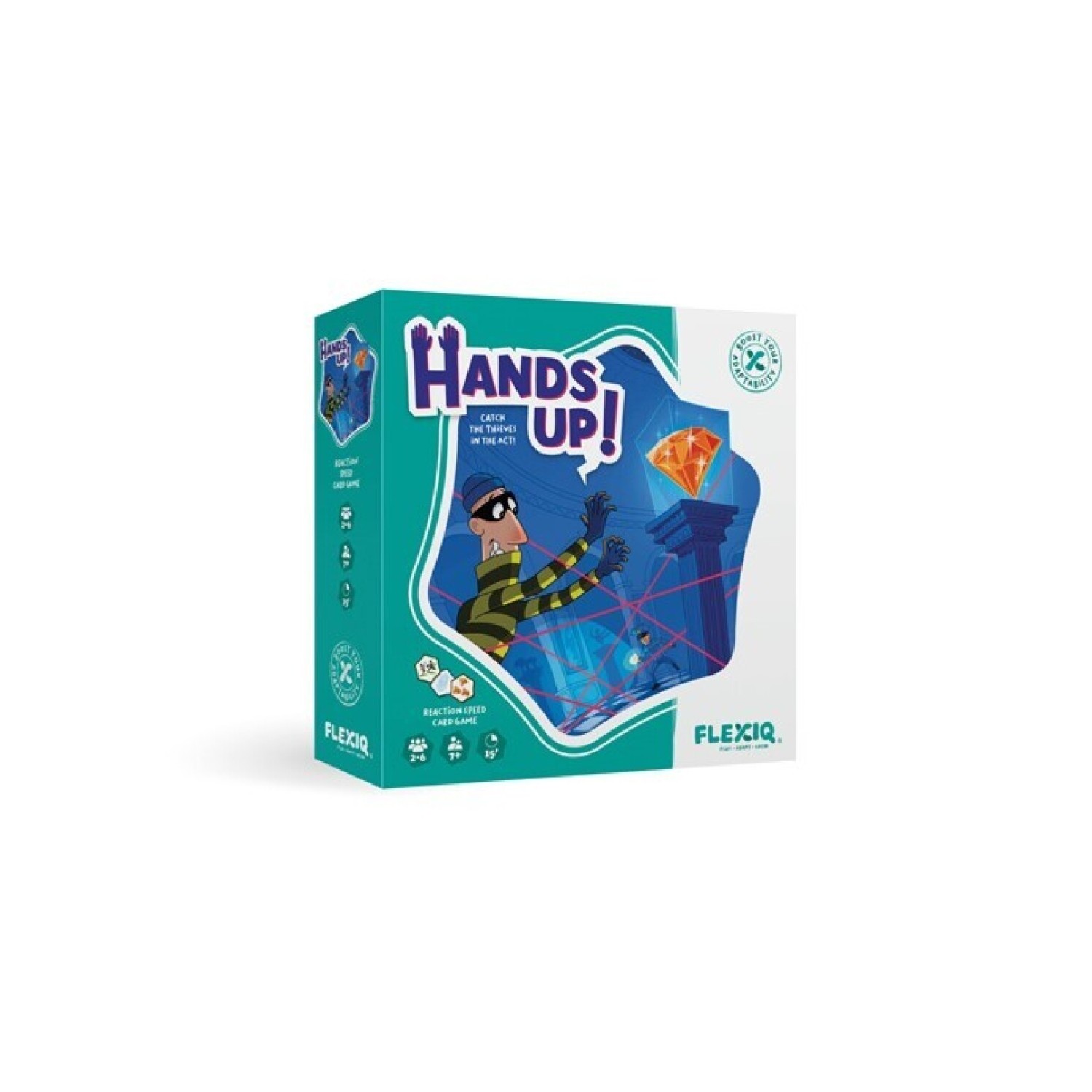 En este juego los jugadores/as se convierten en guardas de seguridad y deben pillar a los ladrones que se han colado en el museum. Para ello se van destapando cartas sobre la mesa y el primero/a que encuentre la combinación correcta de diamantes, ladrones y huellas, y coja el diamante, gana esas cartas. Quien consiga más cartas al final, gana. La carta de interruptor ON/OFF y las demás cartas especiales cambian el tipo de combinación que se ha de encontrar. |