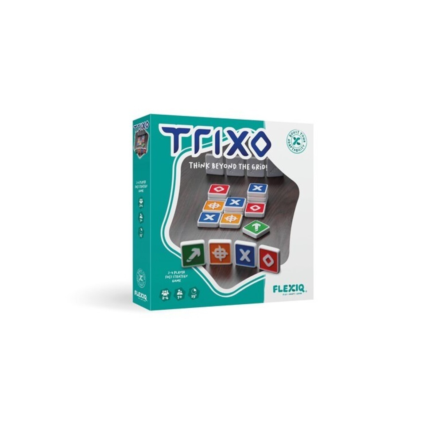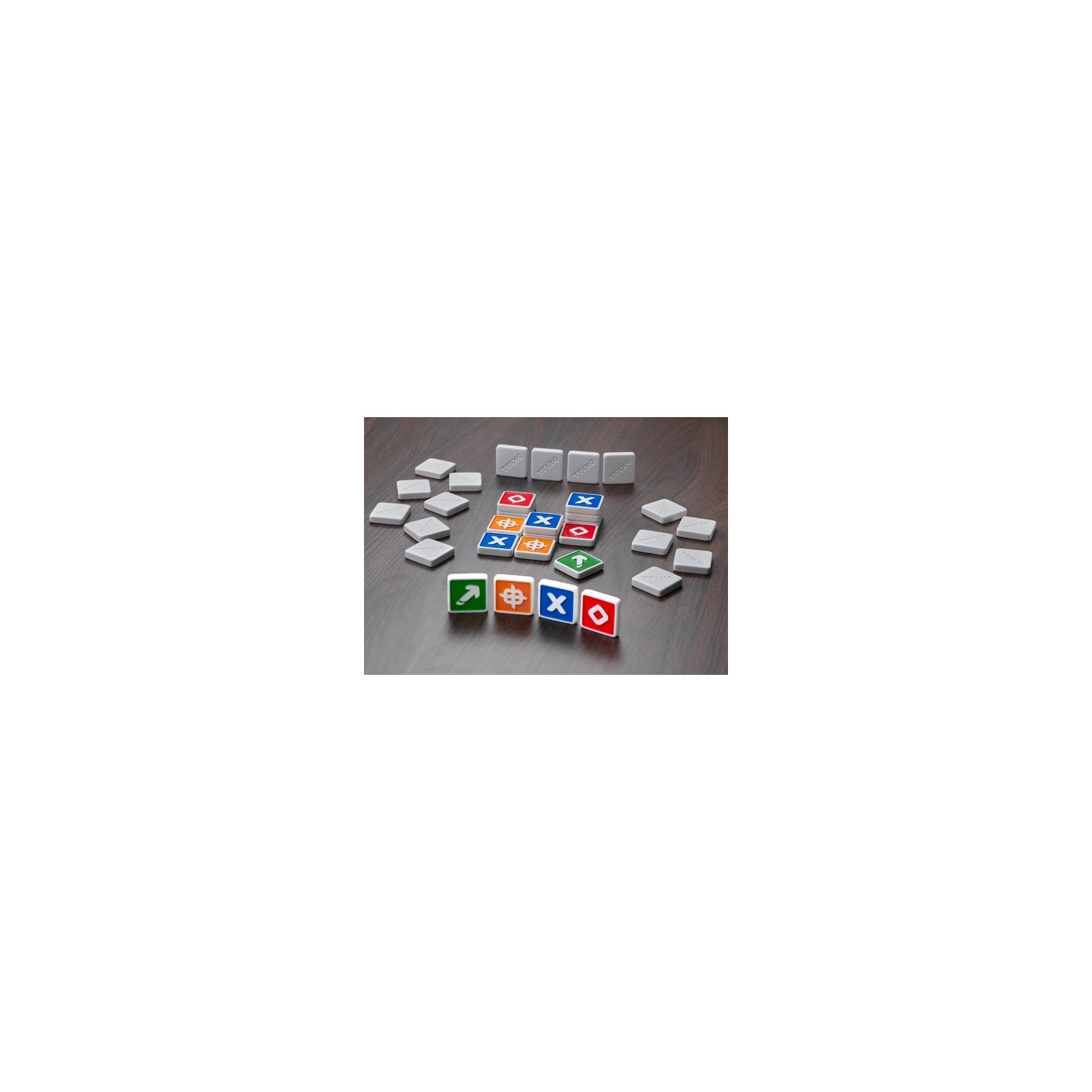 Juego de estrategia y pensamiento avanzado en el objetivo es conseguir el mayor número de fichas. Por turnos los jugadores/as añaden ficha a un parrilla de 3x3 para lograr formar un 3 en raya con símboles iguales. Las fichas se pueden amontonar hasta 3 pisos, las fichas trixo bloquean las opciones de los oponentes y las fichas de flechas permiten mover lineas enteras de fichas.