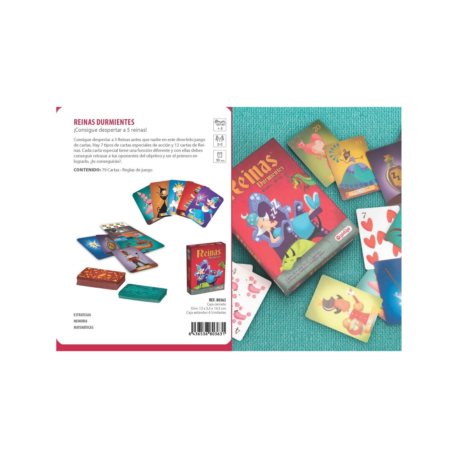 Consigue despertar a 5 reinas antes que nadie en este divertido juego de cartas. Hay 7 tipos de cartas especiales de acción y 12 cartas de Reinas. Cada carta especial tiene una función diferente y con ellas debes conseguir retrasar a tus oponentes del objetivo y ser el primero en lograrlo, ¿lo conseguirás?.