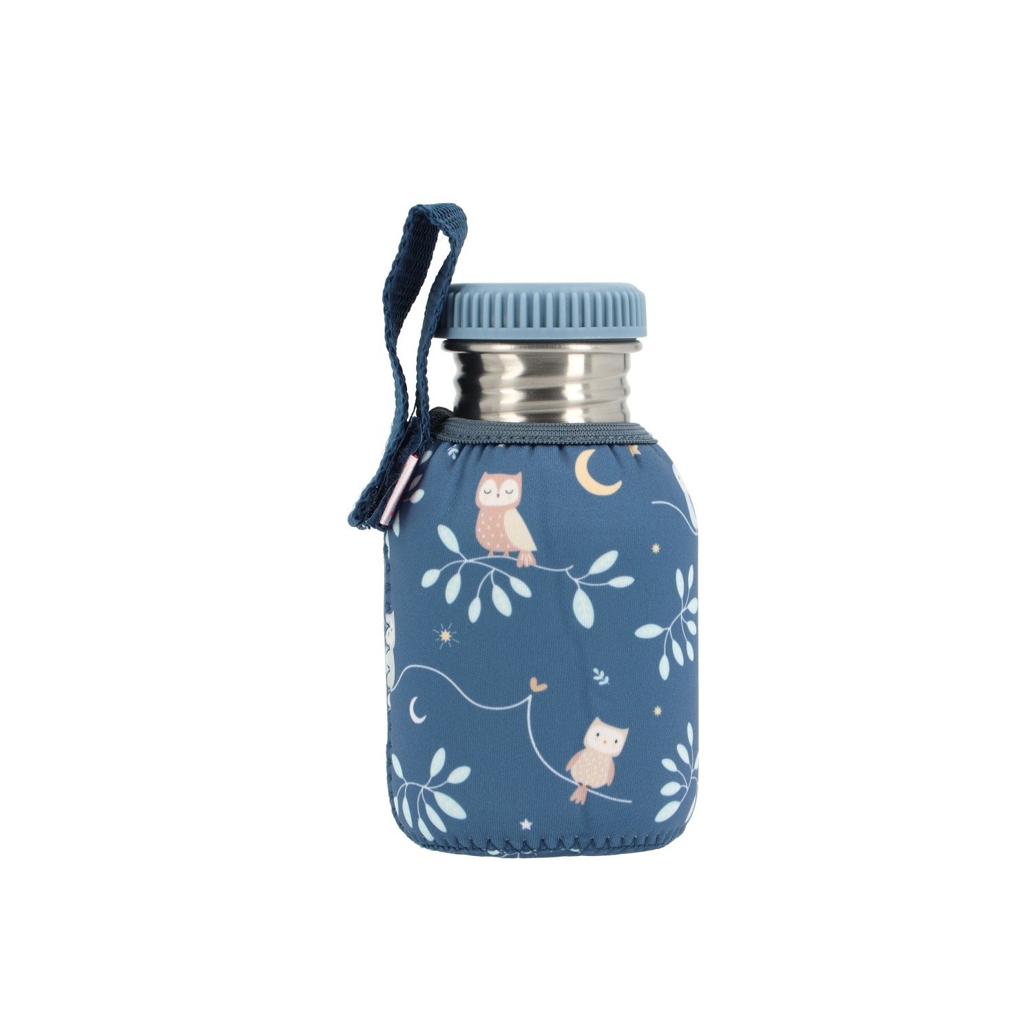 La botella con funda de neopreno es perfecta para llevar al colegio, la guardería o de paseo. Está diseñada para mantener el agua fresca durante más tiempo y evitar los sabores indeseados que pueden transmitir los plásticos.