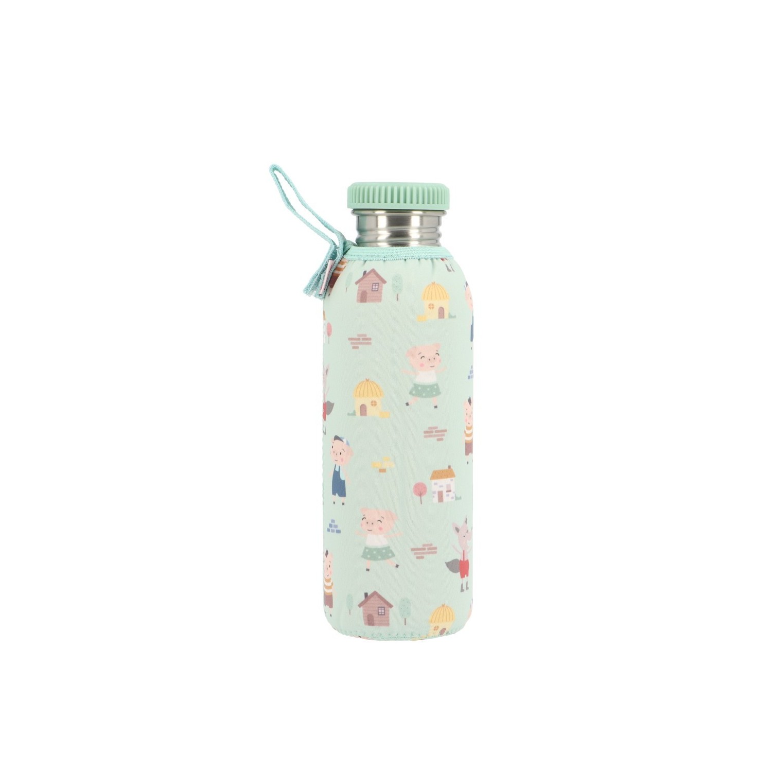 La botella con funda de neopreno es perfecta para llevar al colegio, la guardería o de paseo. Está diseñada para mantener el agua fresca durante más tiempo y evitar los sabores indeseados que pueden transmitir los plásticos.