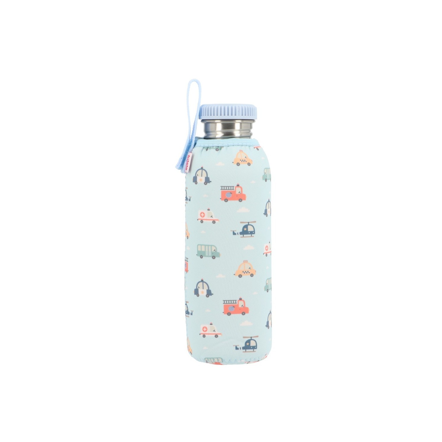 La botella con funda de neopreno es perfecta para llevar al colegio, la guardería o de paseo. Está diseñada para mantener el agua fresca durante más tiempo y evitar los sabores indeseados que pueden transmitir los plásticos.