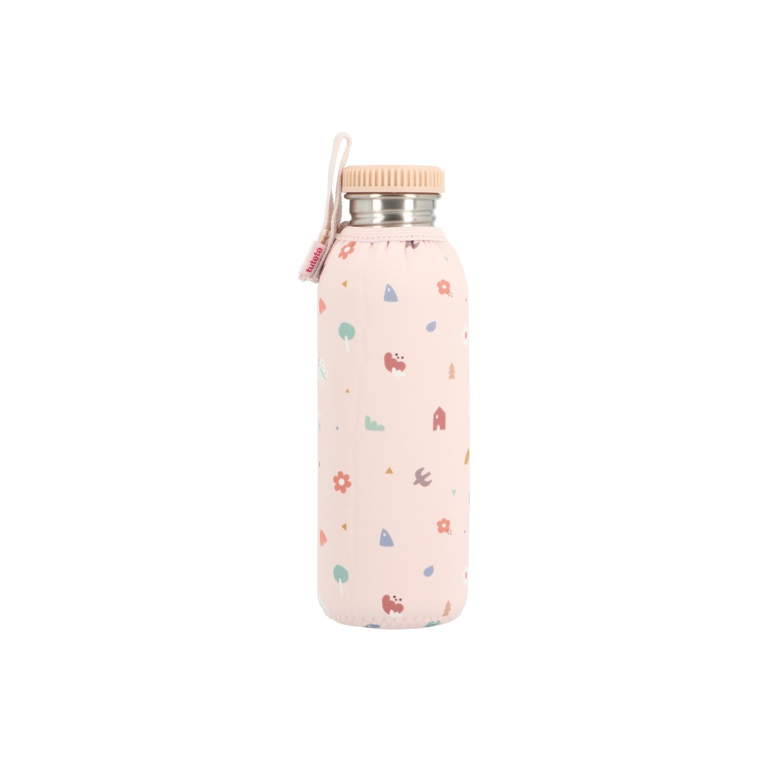 La botella con funda de neopreno es perfecta para llevar al colegio, la guardería o de paseo. Está diseñada para mantener el agua fresca durante más tiempo y evitar los sabores indeseados que pueden transmitir los plásticos.