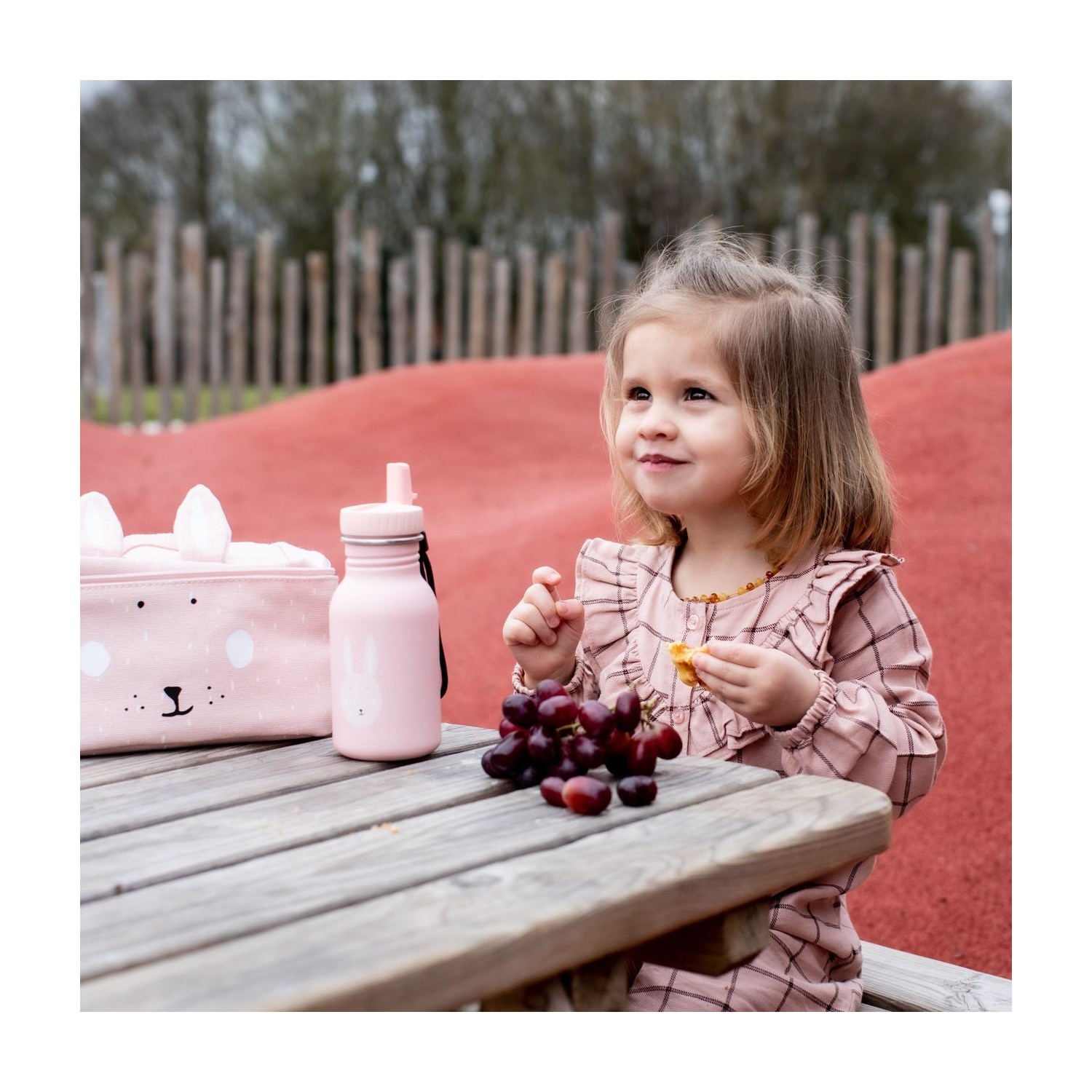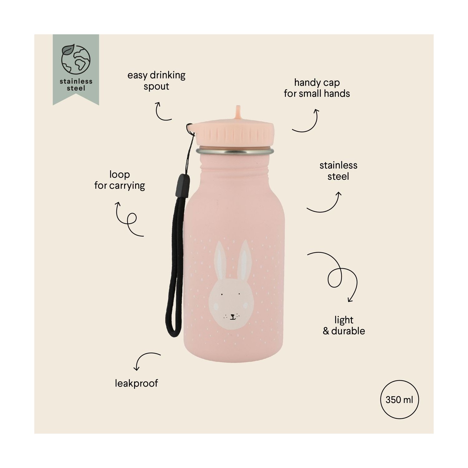 Las botellas son completamente a prueba de fugas. La tapa práctica está diseñada para que las manos pequeñas puedan abrirla y cerrarla fácilmente. Cada botella está equipada con una cuerda con la que puedes transportarla fácilmente o colgarla en una mochila. Cada animal está disponible en 2 tamaños. La botella pequeña tiene un volumen de 350ml, la grande de 500 ml. Ambas botellas tienen un diseño fino para que se adapte bien a las manos de los niños pequeños y se pueda guardar fácilmente en la mochila o en la mochila escolar. La botella viene con una tapa.