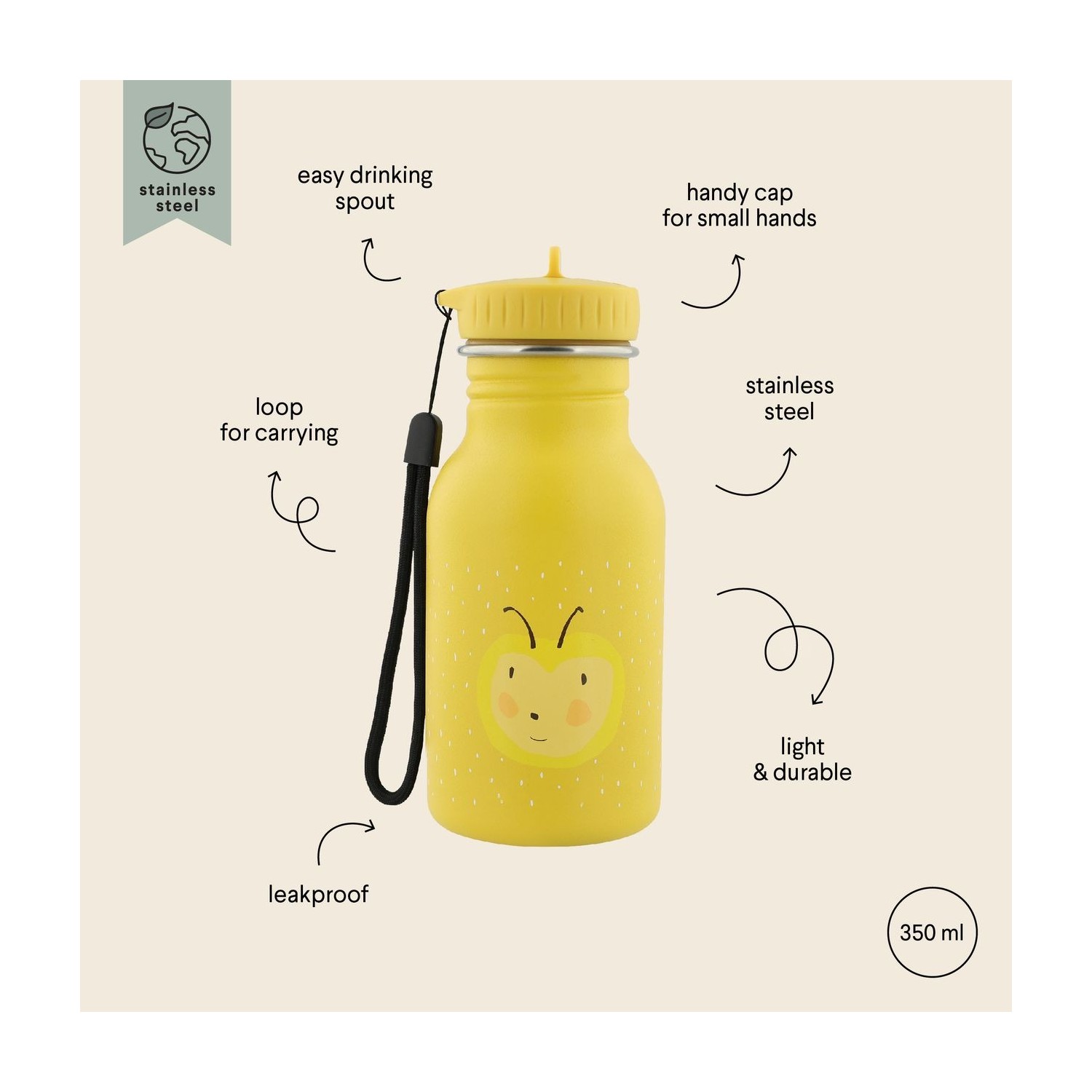 Las botellas son completamente a prueba de fugas. La tapa práctica está diseñada para que las manos pequeñas puedan abrirla y cerrarla fácilmente. Cada botella está equipada con una cuerda con la que puedes transportarla fácilmente o colgarla en una mochila. Cada animal está disponible en 2 tamaños. La botella pequeña tiene un volumen de 350ml, la grande de 500 ml. Ambas botellas tienen un diseño fino para que se adapte bien a las manos de los niños pequeños y se pueda guardar fácilmente en la mochila o en la mochila escolar. La botella viene con una tapa.