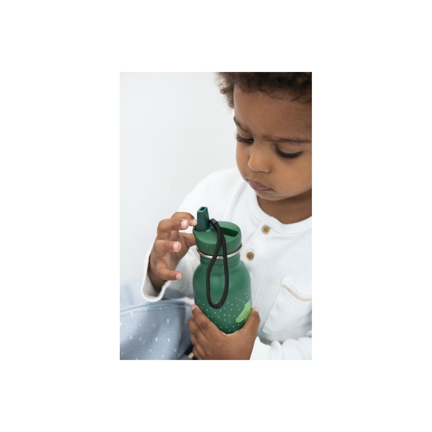 Las botellas son completamente a prueba de fugas. La tapa práctica está diseñada para que las manos pequeñas puedan abrirla y cerrarla fácilmente. Cada botella está equipada con una cuerda con la que puedes transportarla fácilmente o colgarla en una mochila. Cada animal está disponible en 2 tamaños. La botella pequeña tiene un volumen de 350ml, la grande de 500 ml. Ambas botellas tienen un diseño fino para que se adapte bien a las manos de los niños pequeños y se pueda guardar fácilmente en la mochila o en la mochila escolar. La botella viene con una tapa., botella: 100% acero inoxidable - tapa: 100% PP - cuerda: 100% PES, limpiar a mano con agua tibia y jabón