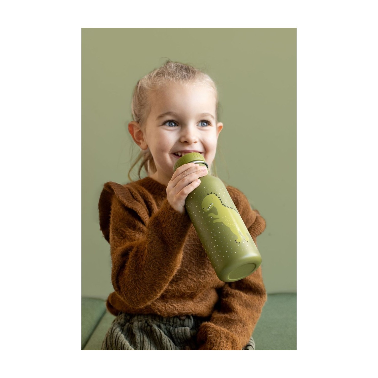 Las botellas son completamente a prueba de fugas. La tapa práctica está diseñada para que las manos pequeñas puedan abrirla y cerrarla fácilmente. Cada botella está equipada con una cuerda con la que puedes transportarla fácilmente o colgarla en una mochila. Cada animal está disponible en 2 tamaños. La botella pequeña tiene un volumen de 350ml, la grande de 500 ml. Ambas botellas tienen un diseño fino para que se adapte bien a las manos de los niños pequeños y se pueda guardar fácilmente en la mochila o en la mochila escolar. La botella viene con una tapa., botella: 100% acero inoxidable - tapa: 100% PP - cuerda: 100% PES, limpiar a mano con agua tibia y jabón